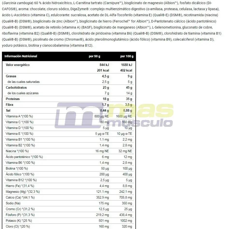 Vitobest's Diet Meal Complete is a meal replacement composed of a formula based on L-carnitine, proteins, carbohydrates, vitamins, minerals, chromium, digestive enzymes, and fatty acids.