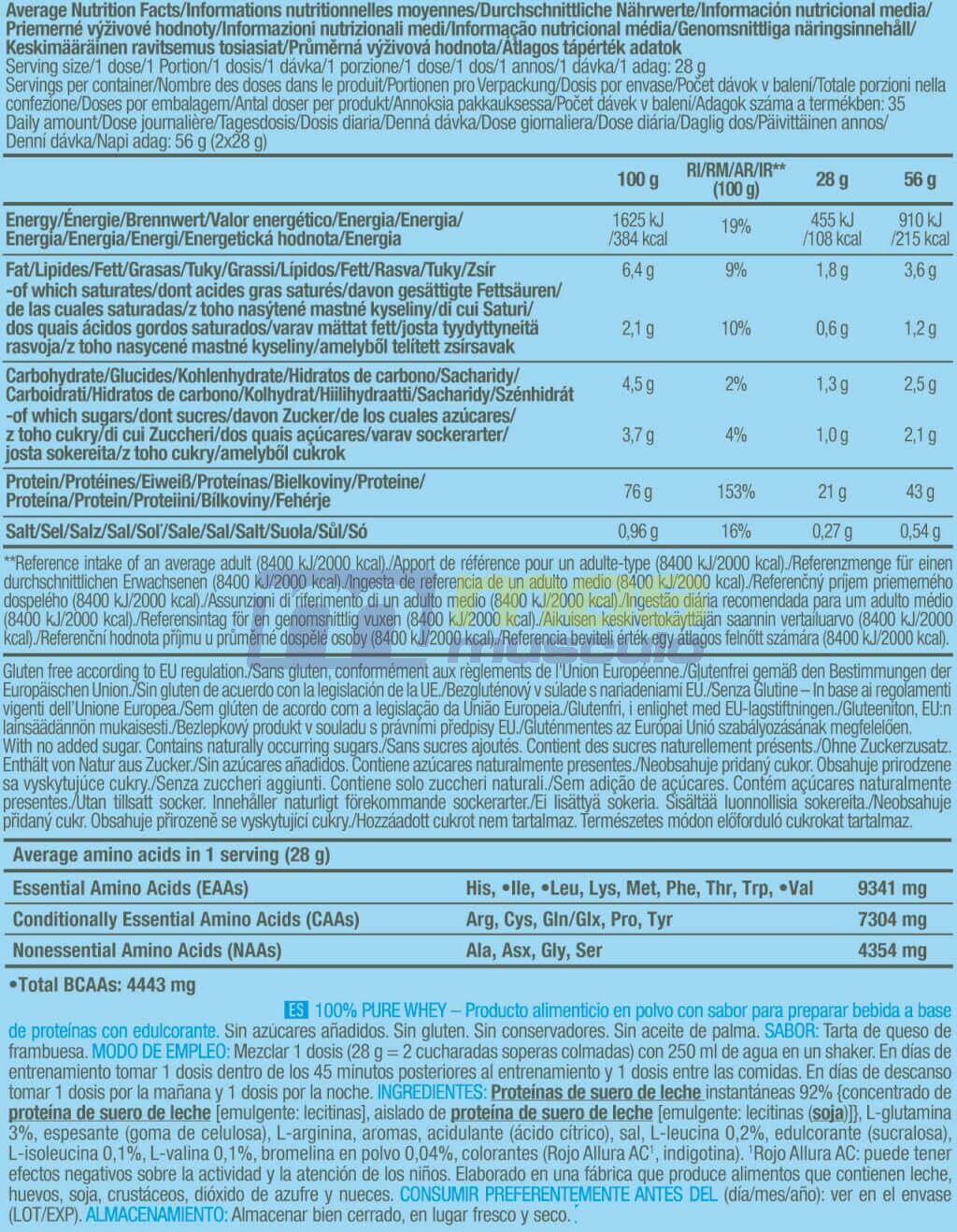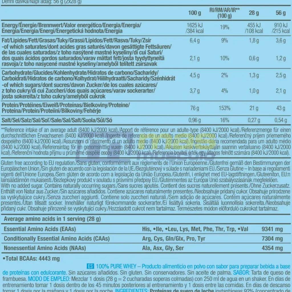 Biotech USA 100% Pure Whey is an excellent nutritional supplement made with the finest whey protein concentrate and a high concentration of BCAAs for preparing protein shakes and ensuring proper nutri