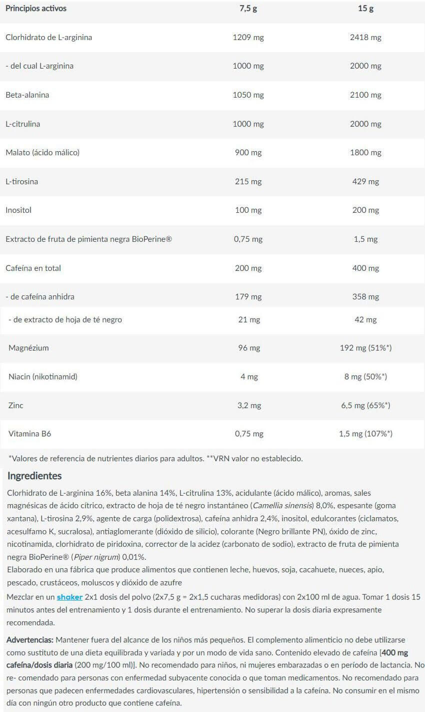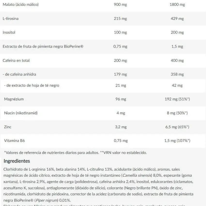 Black Blood CAF+ from Biotech USA is an intense pre-workout with 200 mg of caffeine per serving and a formula that combines L-arginine, L-citrulline, beta-alanine, and B vitamins. It is designed to he