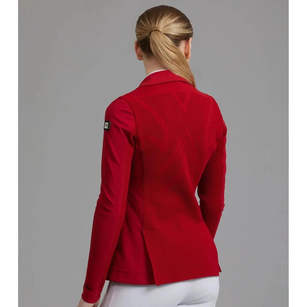 Discover new heights of performance with equestrian wear, focusing intensely on details and innovative fabric technology. Built around high-quality fabrics and technical materials, the BLACK LABEL represents the pinnacle of refined aesthetics, elite performance, and timeless craftsmanship. This ladies' competition jacket is perfect for a wide range of equestrian disciplines. The construction of this innovative design combines different panels of technical fabrics. The front of this jacket is made from a lightweight and smooth material that feels luxuriously soft to the touch and comfortable against your skin. Evolved for the modern rider, the back and arms incorporate a technical 3D knit that molds to the muscular anatomy of the rider’s back and shoulders. This innovative construction allows for improved freedom of movement, while creating unparalleled breathability, ideal for the intensity of competition. Classically tailored, this competition jacket is shaped to provide a flattering silhouette, with meticulously placed style lines. A traditional lapel collar sits atop a concealed YKK zipper kept tidy by a snap closure. Two pockets offer space to store your valuables, with added security provided by matte finish zippers. The subtle matte style continues through the finer details of this jacket, including the branded snap closures, and the PE marking at the wrist edge. Our signature chrome PE badge is located on the left arm of the rider, showing continuity with our existing collection. A raised PE shape is elegantly positioned on the right arm of the rider, boasting the quality and functionality of this luxury performance jacket. An elegant statement piece, this competition jacket is sure to deliver a classic and sophisticated aesthetic. The soft shade of French Navy allows you to make a professional impression in the arena, refreshing your competition wardrobe. Innovation is part of our company DNA. We have integrated decades of expertise into exciting new advancements in performance textiles. Pushing the boundaries of current industry standards, every detail is considered, bringing new heights to your equestrian wear. The Competition Jacket Quarto Ladies is a key representative of these values, making luxury and high-end designs accessible and affordable.