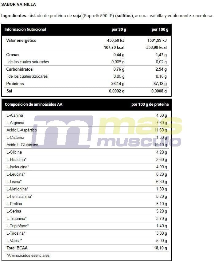Soy Iso Protein from Vitobest, a protein supplement with a high isoflavone content, plant-based, non-GMO, and made with Supro soy protein.