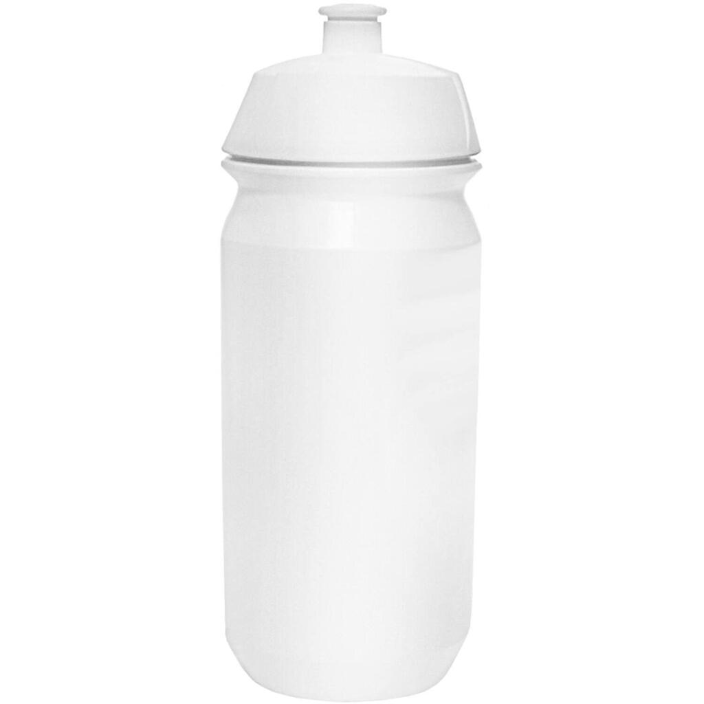 Tacx Shiva 500 ml bike bottle in white plastic with lockable pull spout and triangular cap for extra grip.