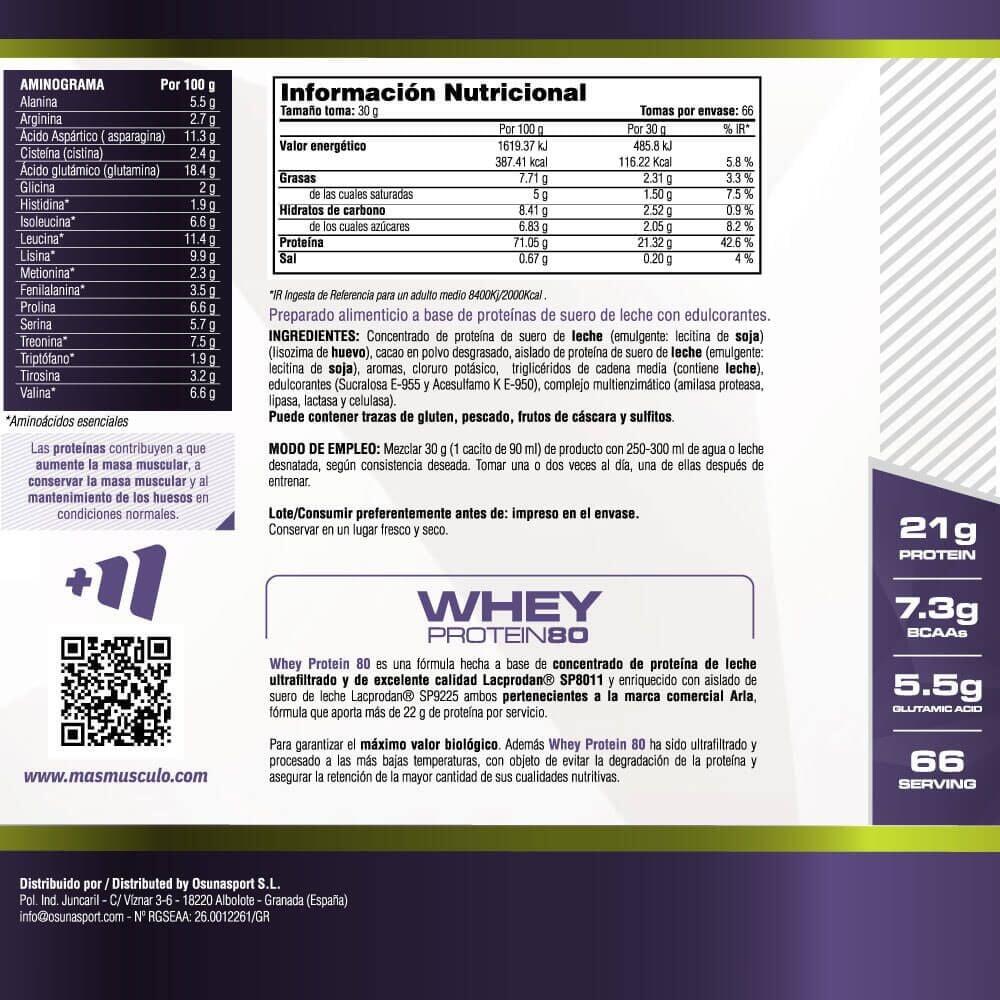 MASmusculo Whey Protein80 is a food product based on ultrafiltered whey protein, further enriched with whey protein isolate, from the best Lacp raw material