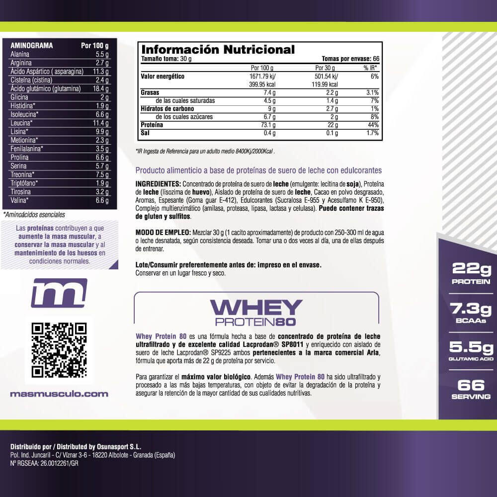 MASmusculo Whey Protein80 is a food product based on ultrafiltered whey protein, further enriched with whey protein isolate, from the best Lacp raw material