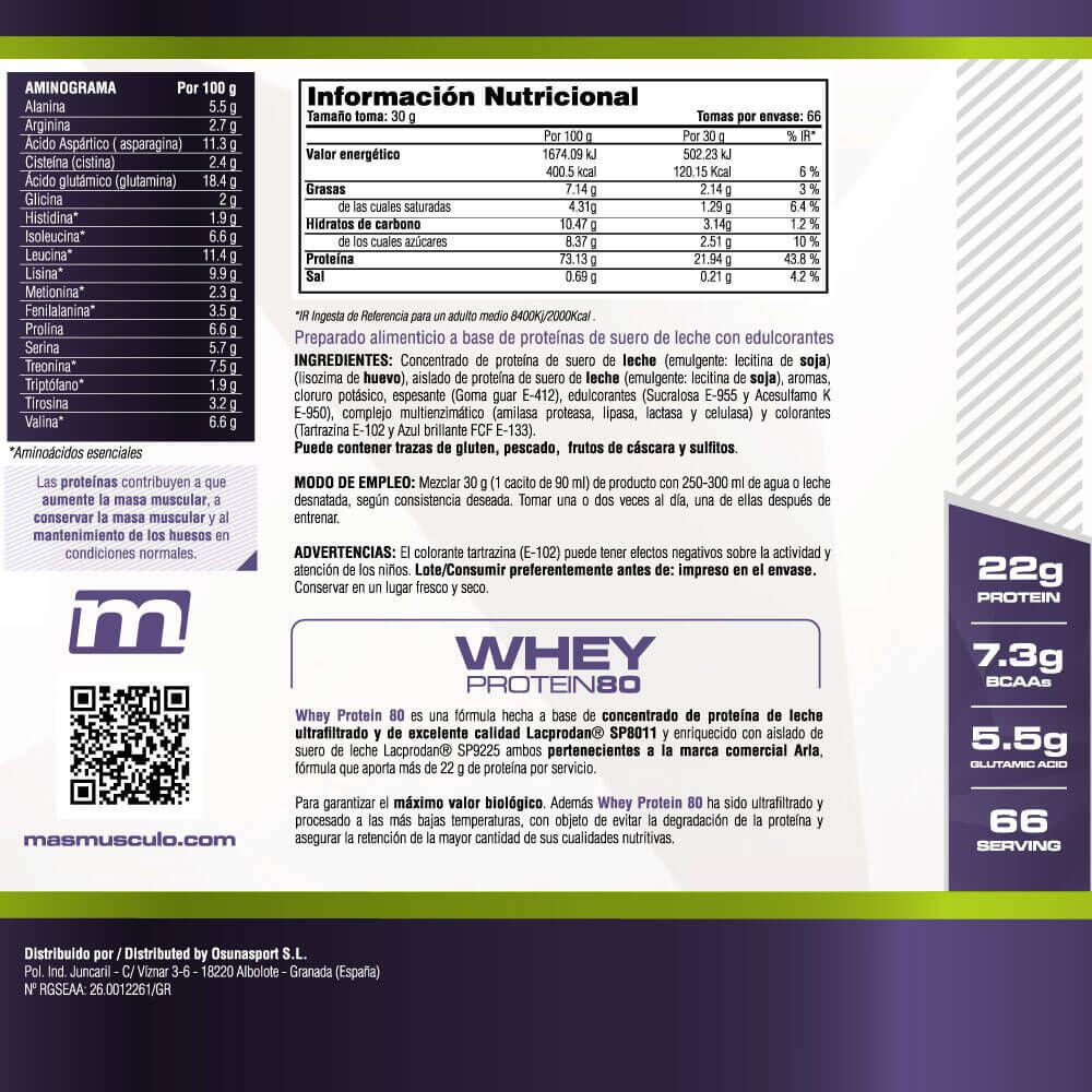 MASmusculo Whey Protein80 is a food product based on ultrafiltered whey protein, further enriched with whey protein isolate, from the best Lacp raw material