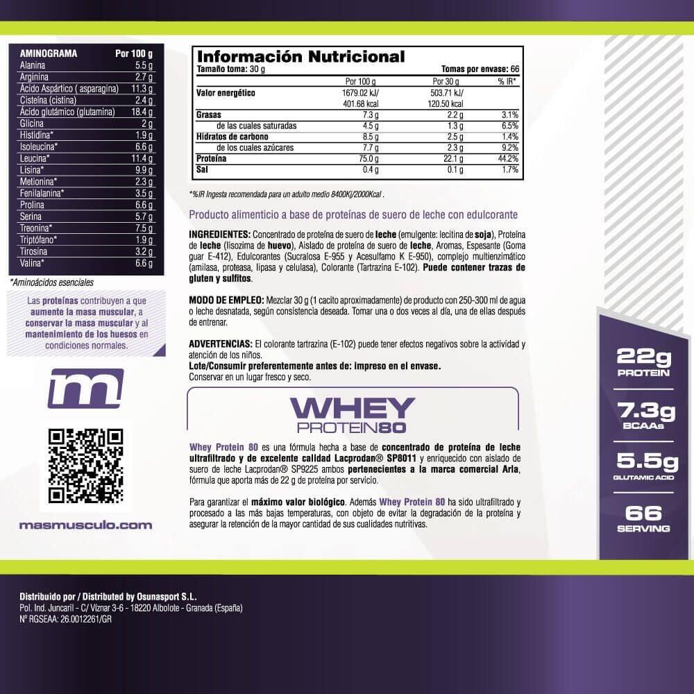 MASmusculo Whey Protein80 is a food product based on ultrafiltered whey protein, further enriched with whey protein isolate, from the best Lacp raw material