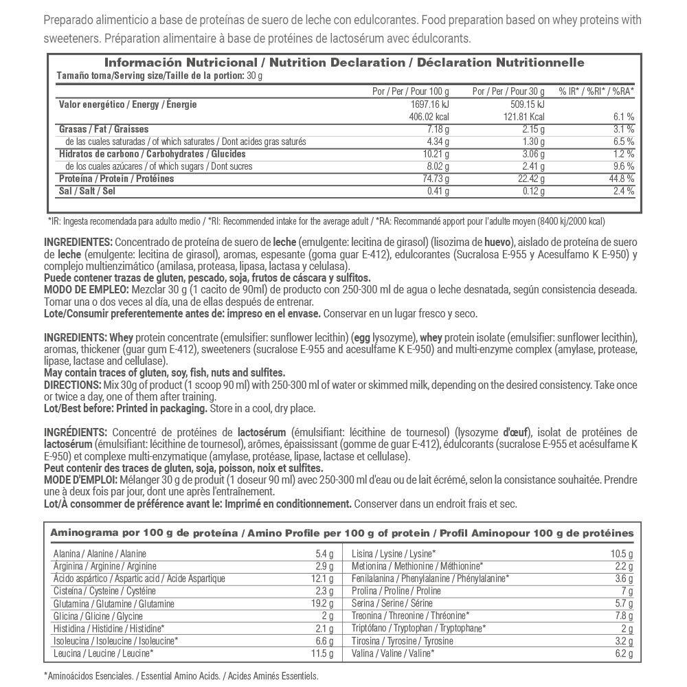 MASmusculo Whey Protein80 is a food product based on ultrafiltered whey protein, further enriched with whey protein isolate, from the best Lacp raw material