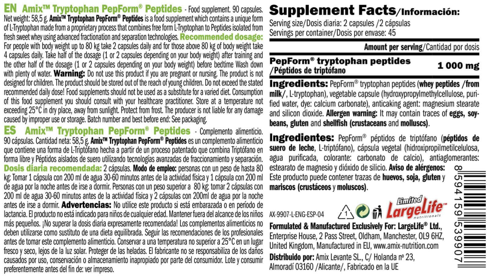 Amix Pepform Tryptophan Peptides combines L-Tryptophan with whey peptides to offer an advanced and highly bioavailable form