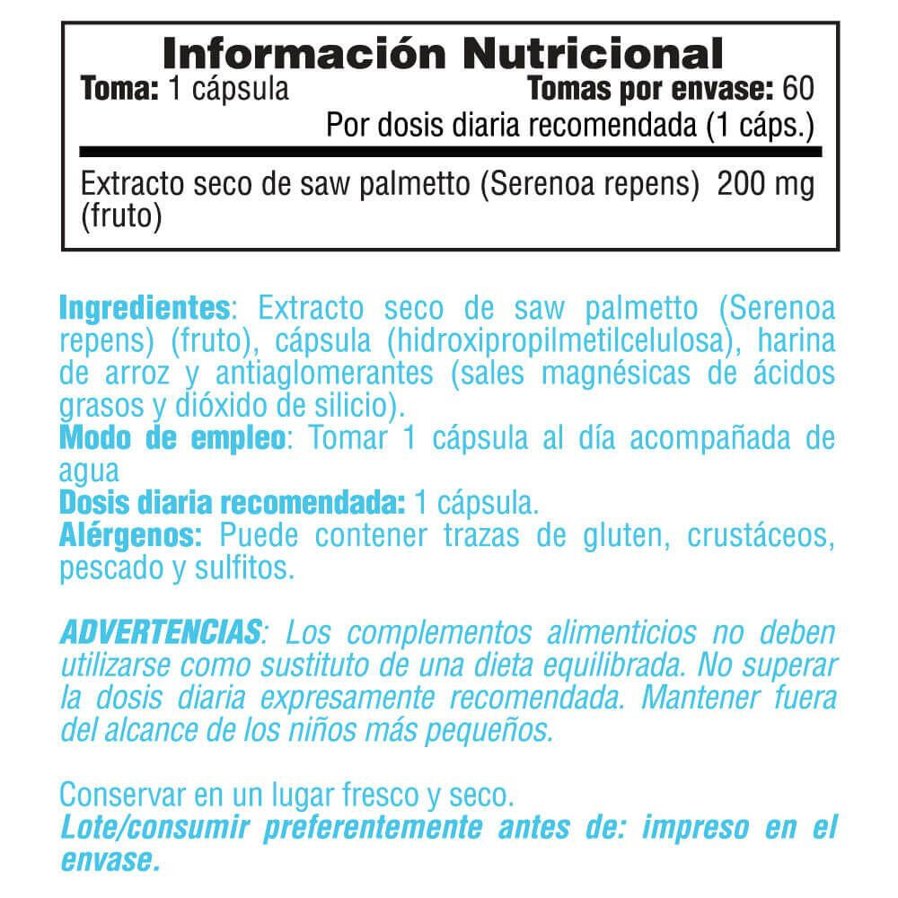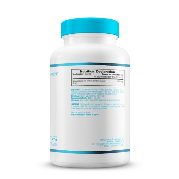 Smart Supplements' Saw Palmetto 200mg is a food supplement based on dry saw palmetto extract (Serenoa repens). Each vegetable capsule provides 200mg of this ingredient.