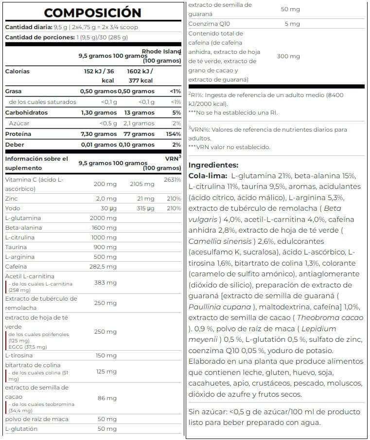 Nutritional values ​​may vary slightly depending on the flavor. Always consult the product label for exact information.