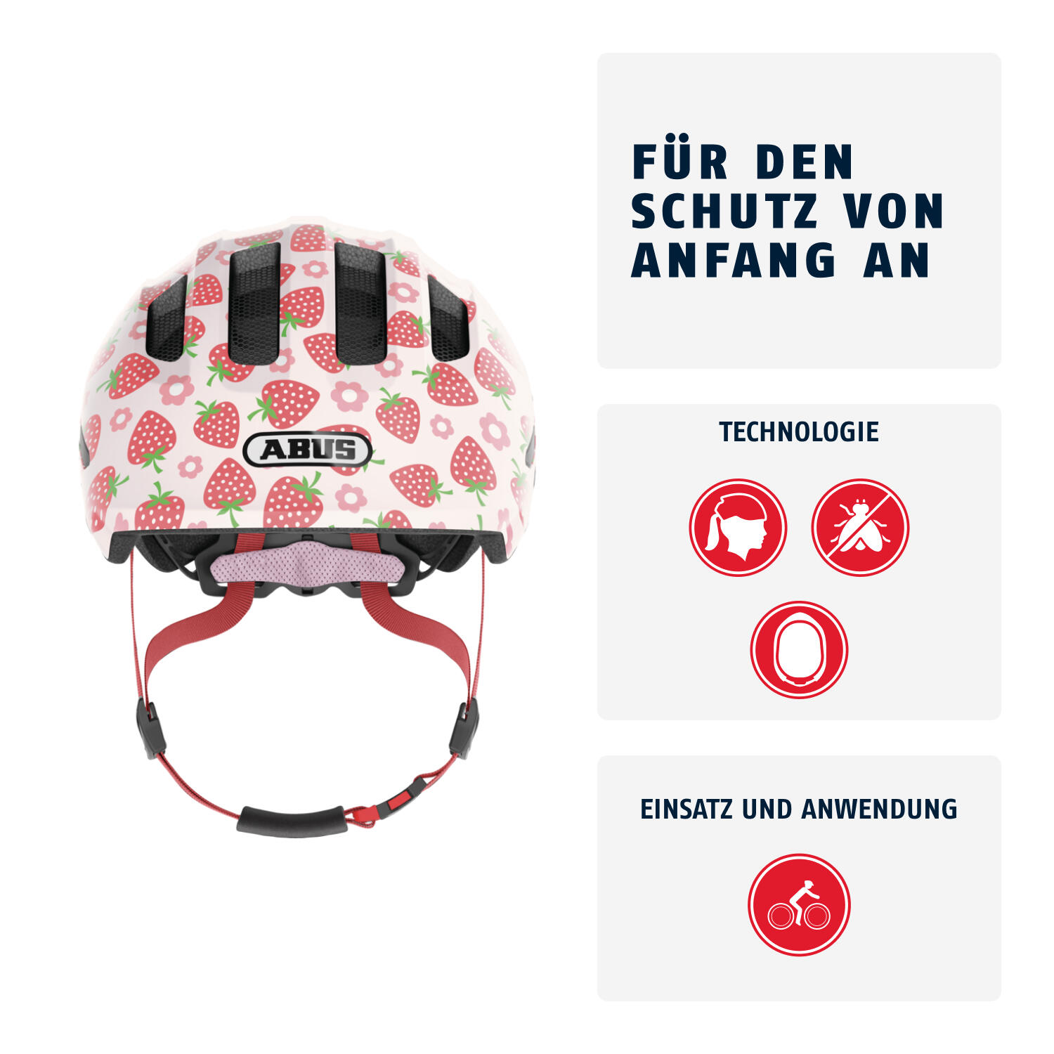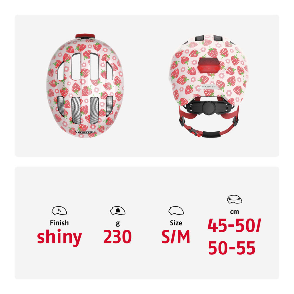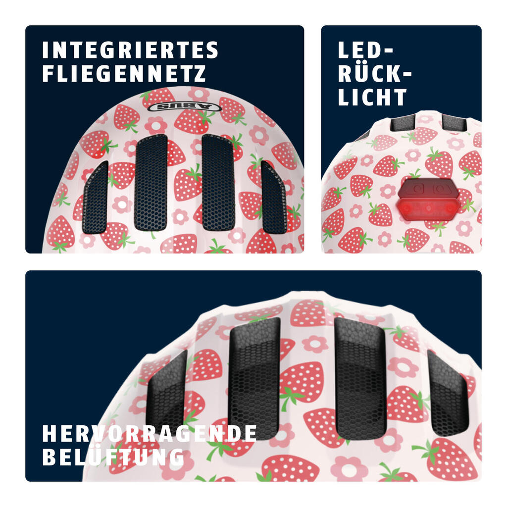 Protect your child right from the start with the Abus helmet: improved outer shape, easy adjustment, rear LED and enhanced comfort.