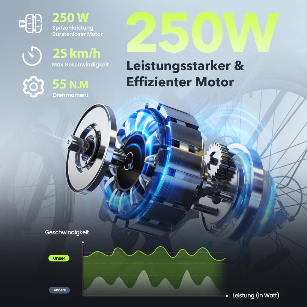 26inch steop-thru ebike with 250W motor and 7 Speed gear.