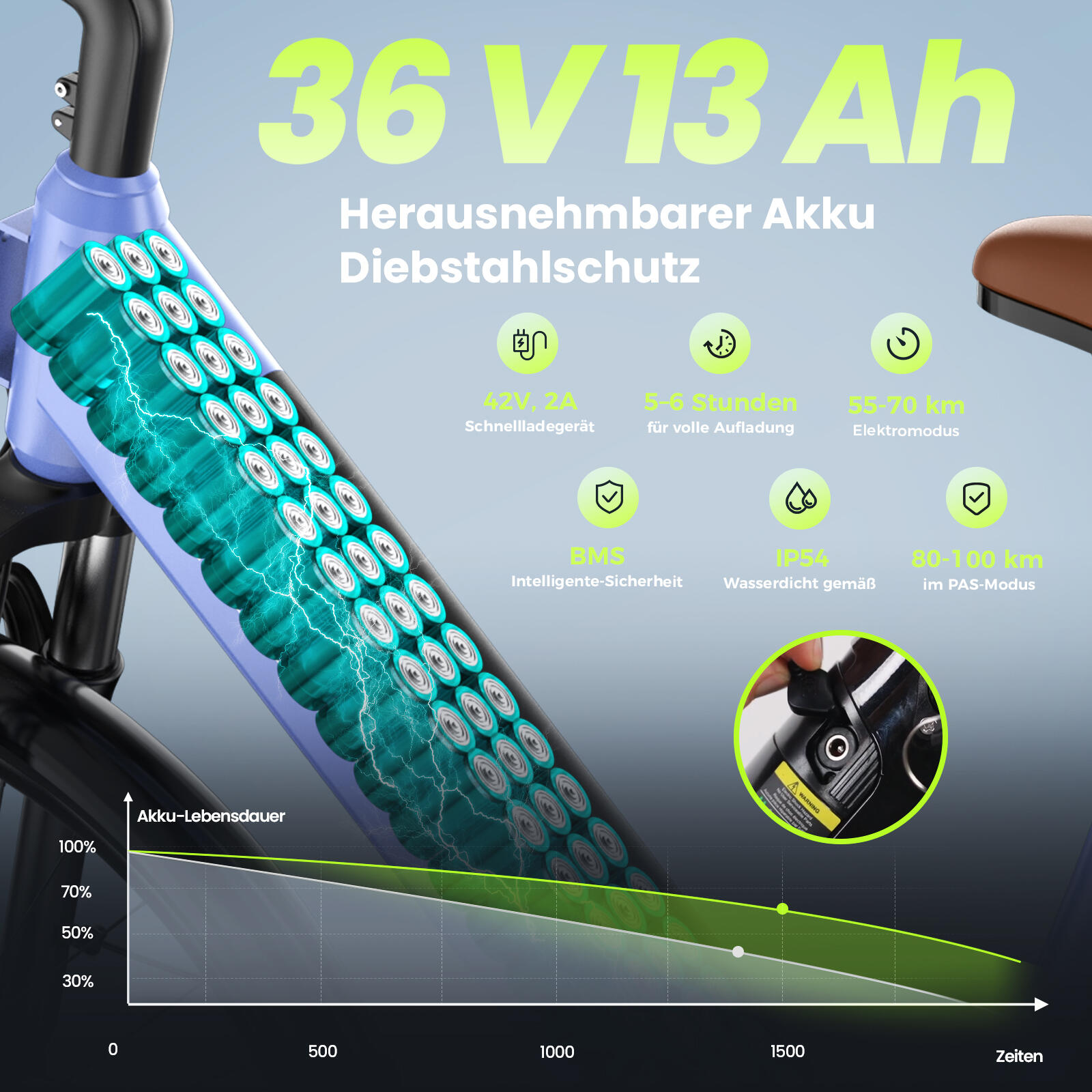 iScooter Ucitys Urban Electric Bike, 36V 13Ah Battery, APP Control