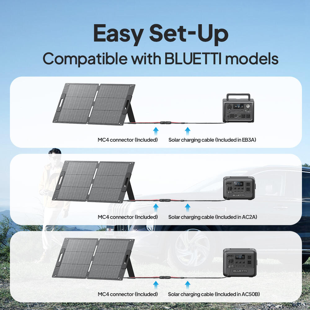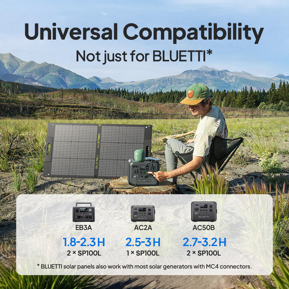 - [100W Solar Panel] - With solar connector, offers 100W solar power for solar generator like BLUETTI ELITE200 ELITE300 AC70 ELITE100 AC200L and others on the market.
