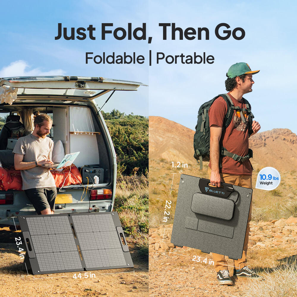 - [Foldable & Portable] - With a folded size of 49.4× 47.1× 7.5 cm and a weight of 5.7 kg, you're able to take this solar panel anywhere you need solar power.