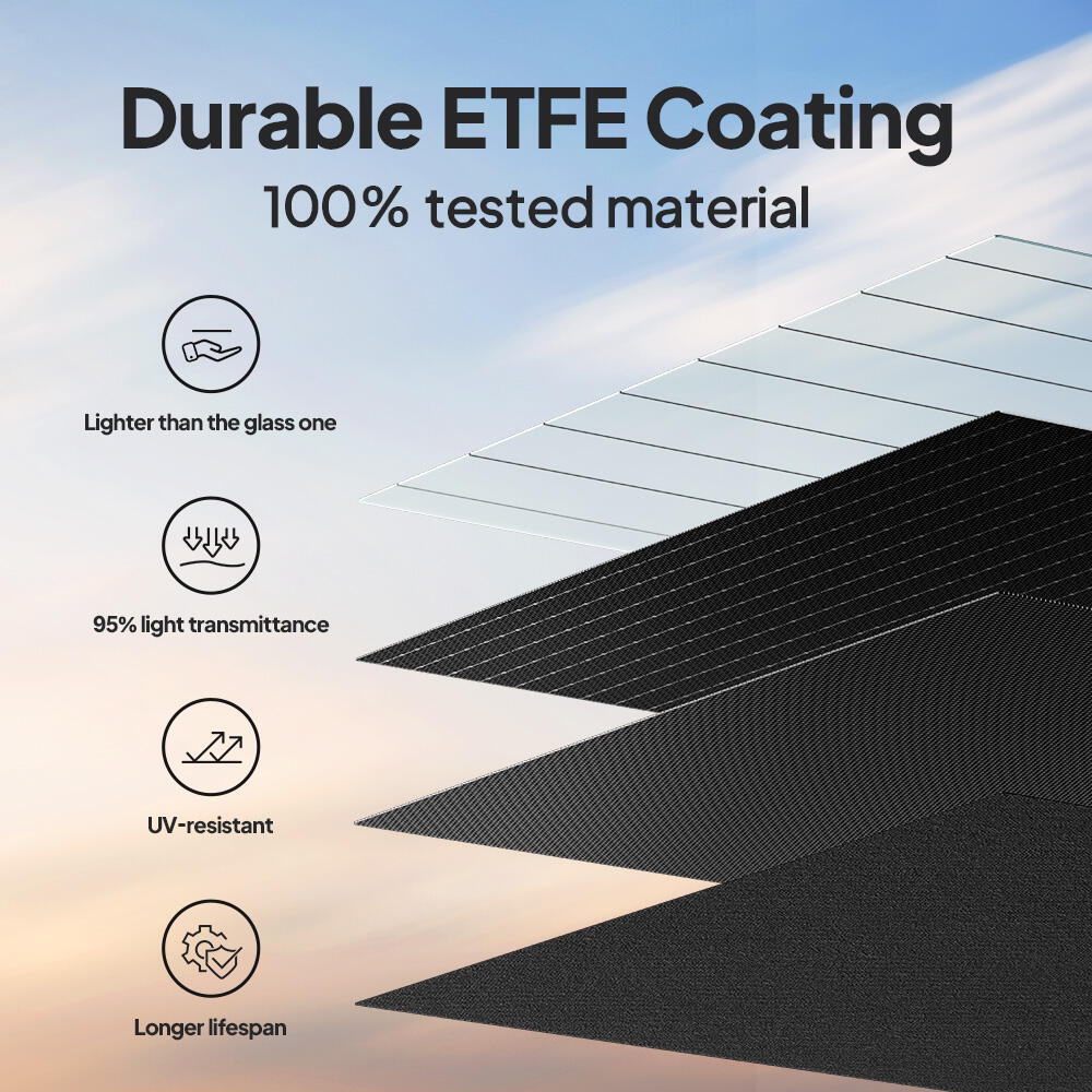 Crafted with innovative ETFE coating, the PV100 offers unparalleled durability and UV resistance, extending its lifespan and ensuring optimal performance in all environments.