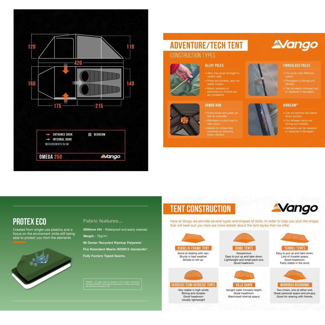 • TBS®II - Unique to Vango tents, our Tension Band System creates a triangulated shape inside the tent to brace against strong and changeable winds and reduce sideways deformation. TBS®II is easy to adjust and can be securely stowed when not in use.