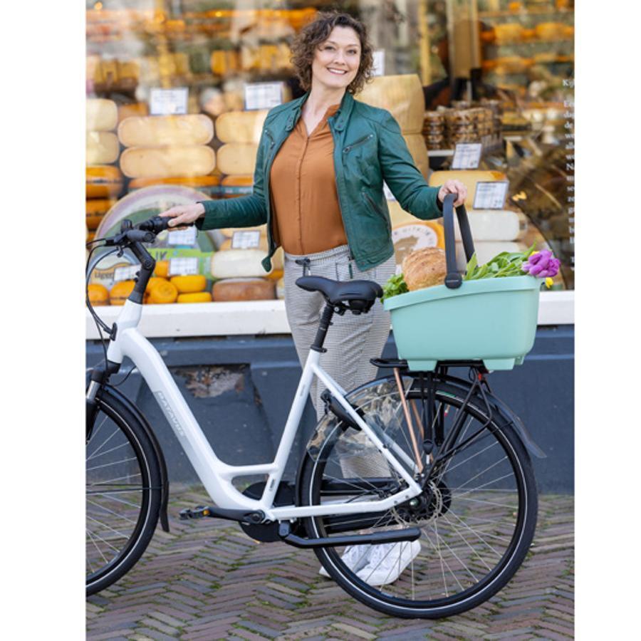 Make your transport easier with the recycled plastic rear basket Newlooxs Clipper SS. 28L and up to 10kg on luggage rack with 5 attachment options and 180° folding handle.