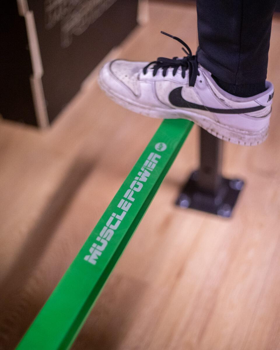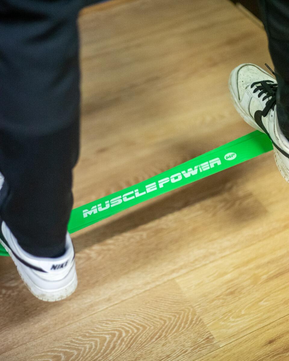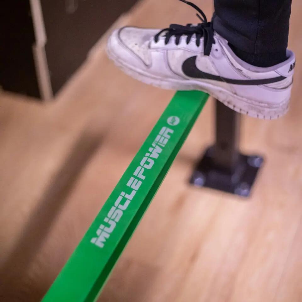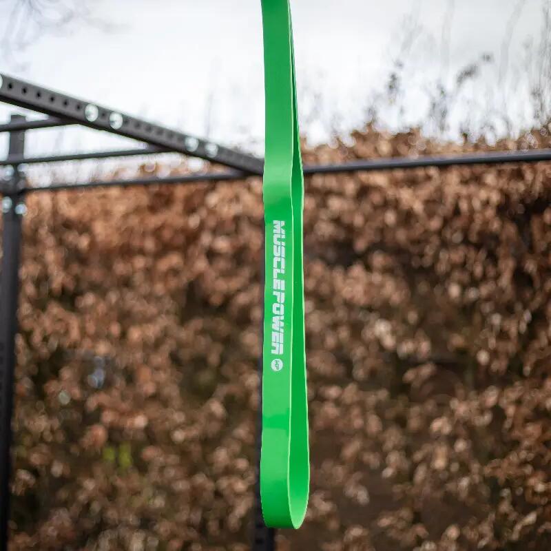 You can also use the power band to make exercises harder. Think of a bench press with two power bands connecting the barbell to the fitness bench. The power bands will provide resistance when pressing the barbell upwards. The elasticity of the power bands offers a lot of possibilities.