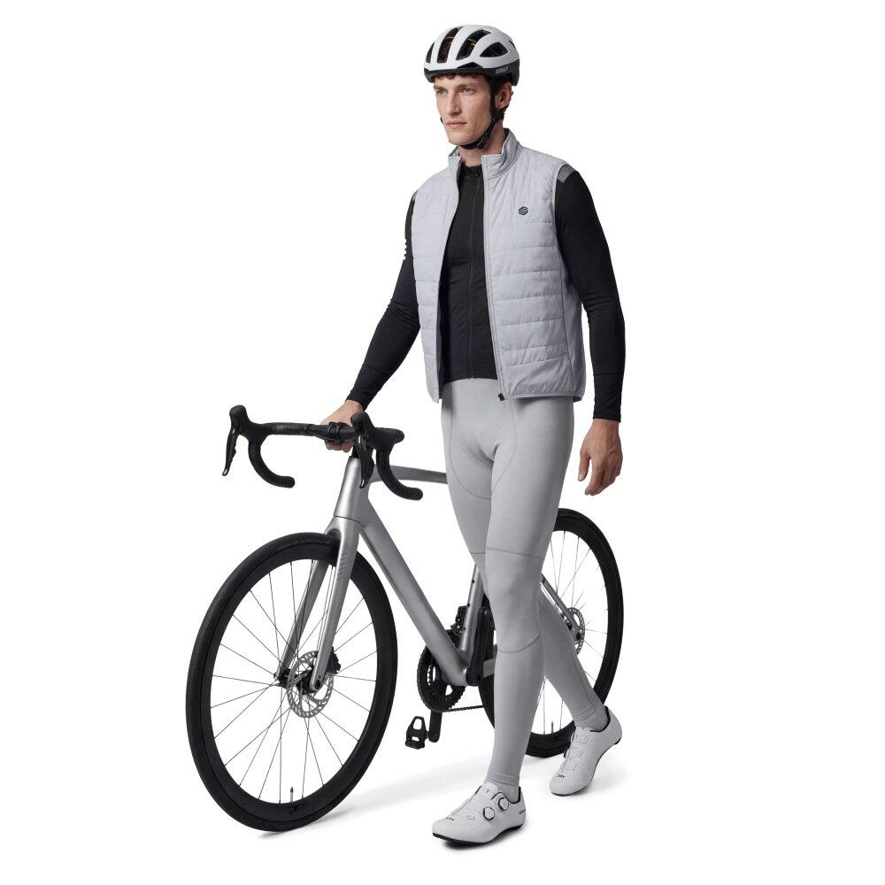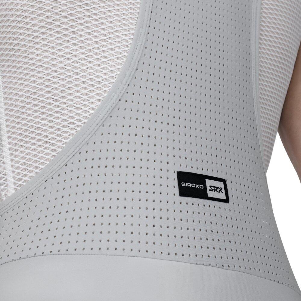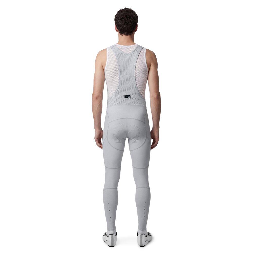 SRX Supreme Gray bib tights offer top performance with precise crafting, Strato++ chamois, Italian MITI Thermoroubaix® fabric, windproof panels, DWR coating, UPF 50 rating, and reflective detailin