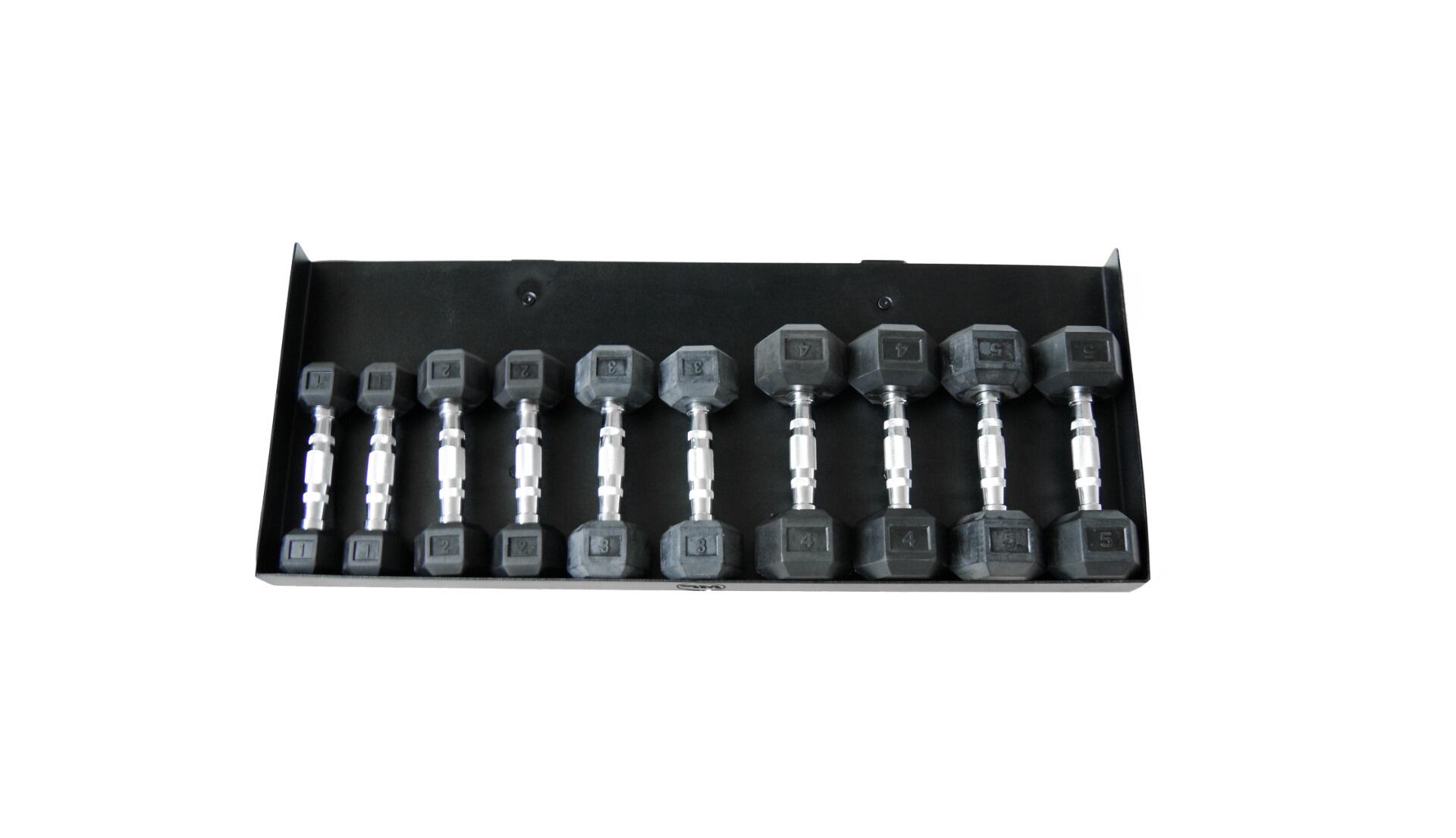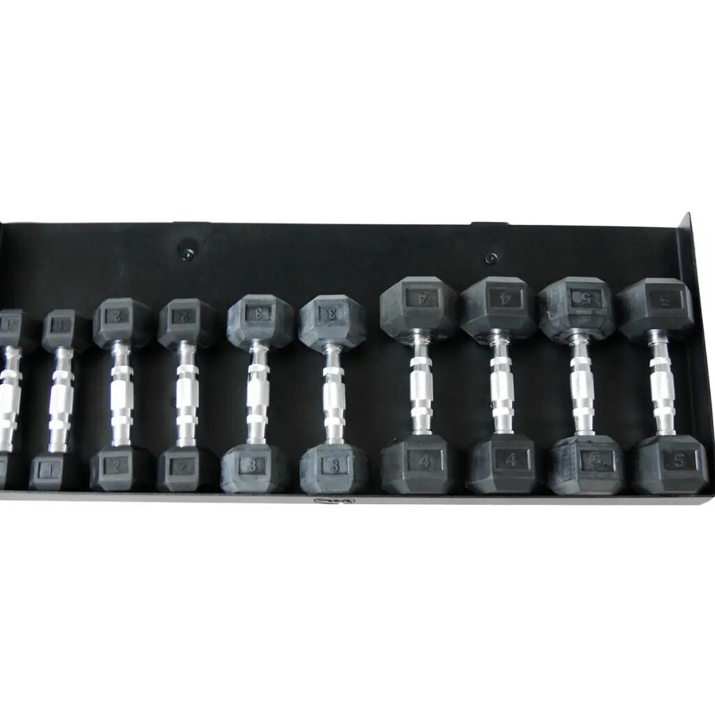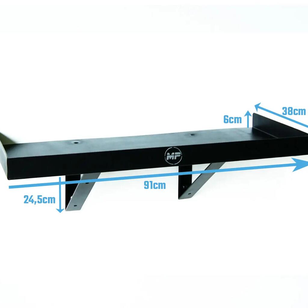 The wall rack is made of durable steel and provides enough space for four kettlebells or five sets of dumbbells (10 in total). This allows you to store your kettlebells and dumbbells safely and organized, without worrying about damage or loss of the weights. The rack is also easy to assemble, so you can start training right away.