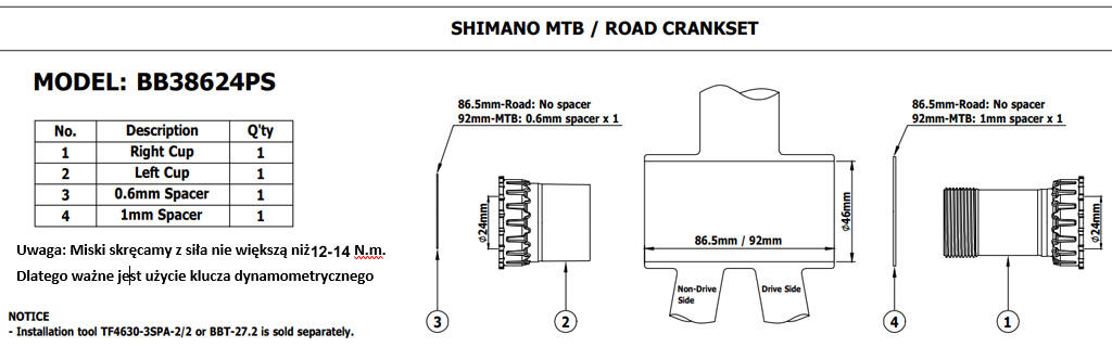 Optimize your cycling performance with the bottom bracket Token BB38624PS, designed for easy installation and perfect connectivity.