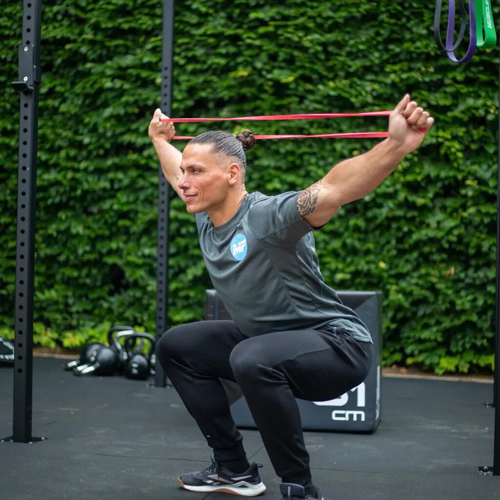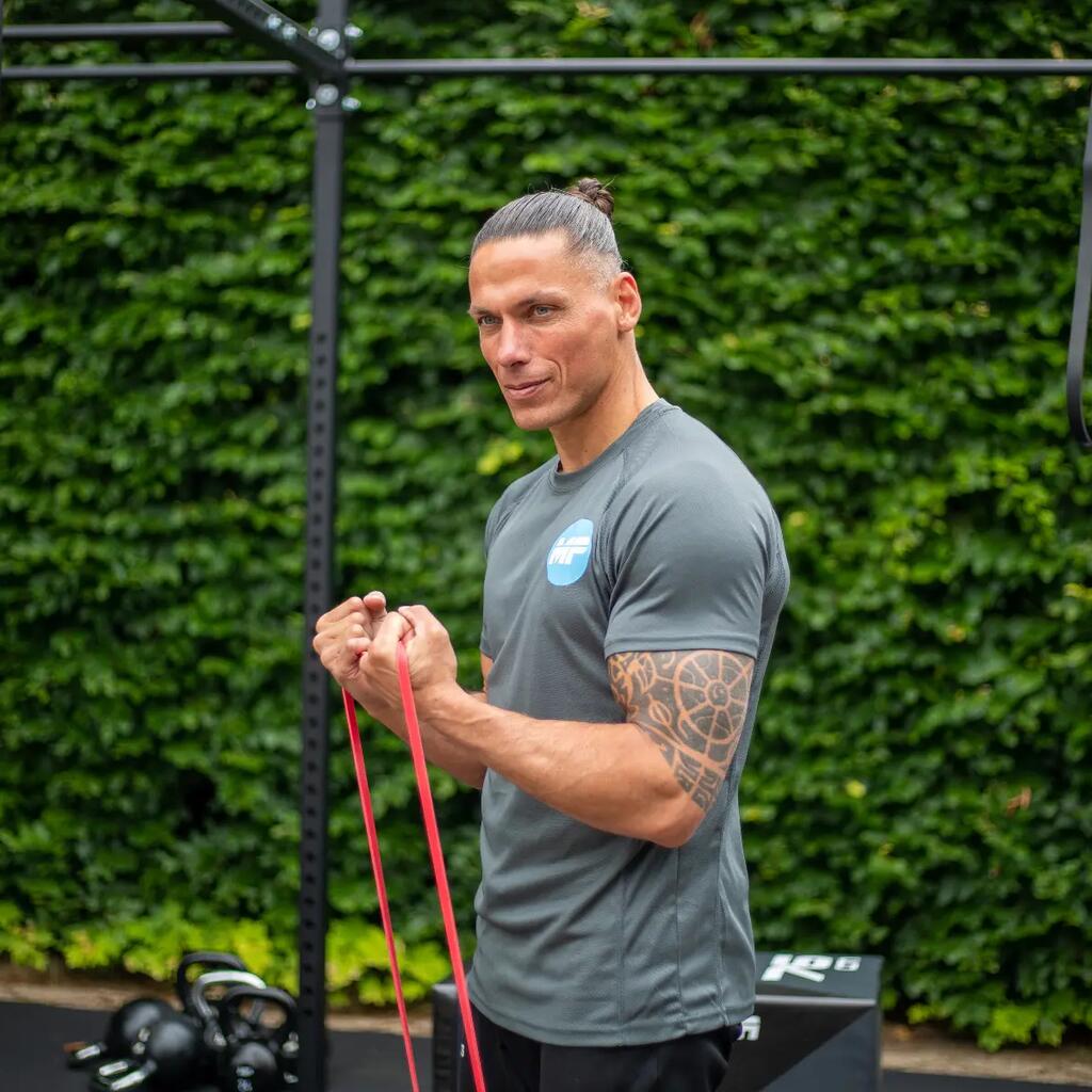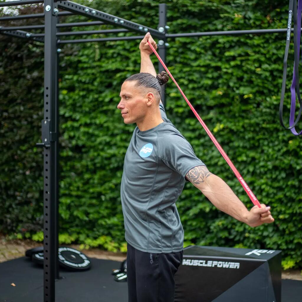 Train versatilely with the Muscle Power Power Band Red, which provides both assistance with pull-ups and extra resistance for strength and explosiveness training.