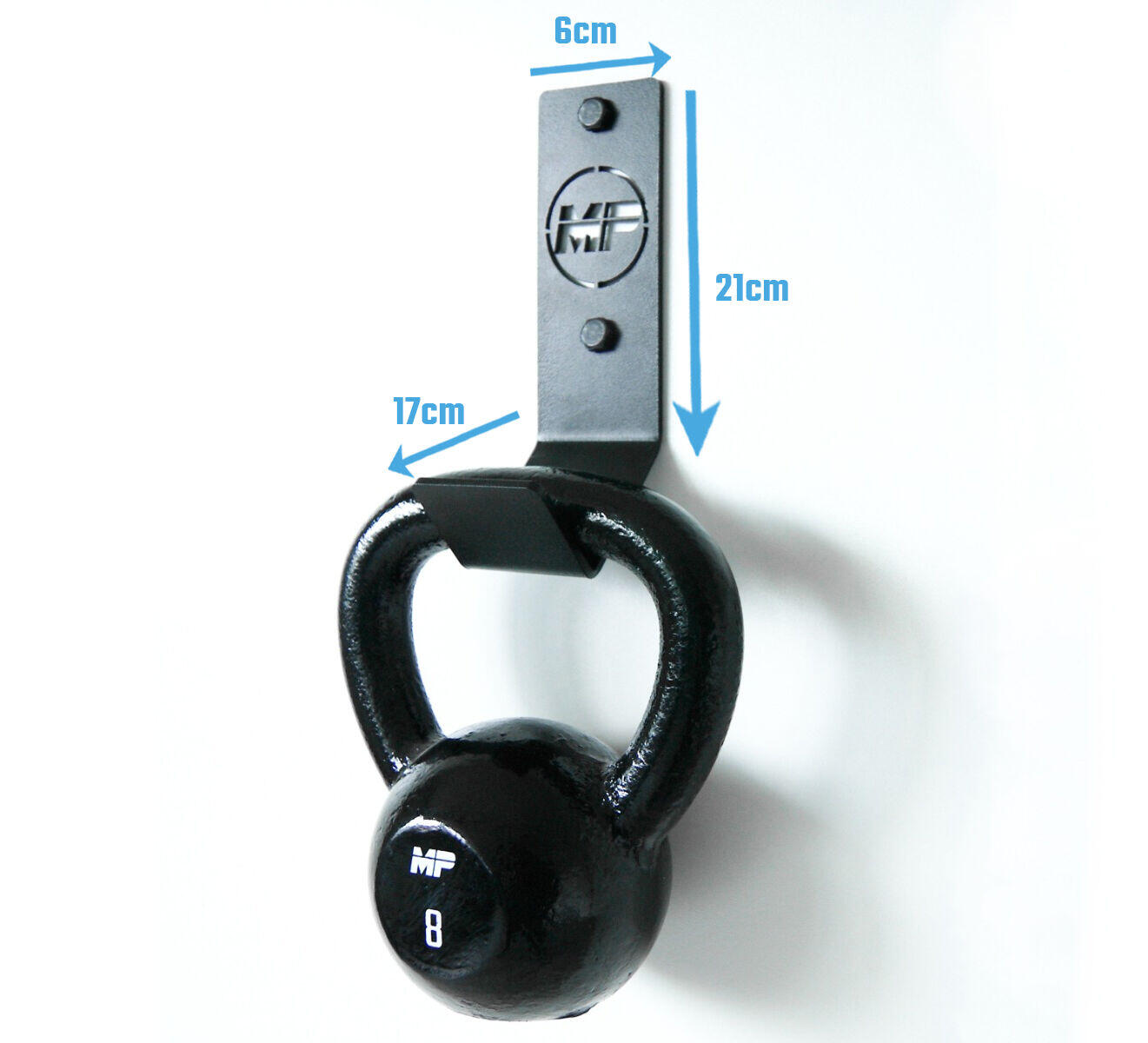 Organize your workouts with the black-coated Muscle Power wall mount, which safely and space-efficiently stores your kettlebells up to 60 kg.