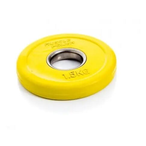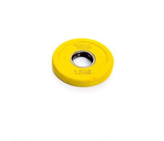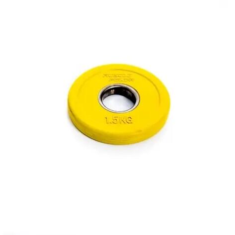Add with Muscle Power Fractional Olympic Bumper Plates weight increments of 0.5, 1, 1.5, and 2 kg to your 50 mm barbell for precise progression.