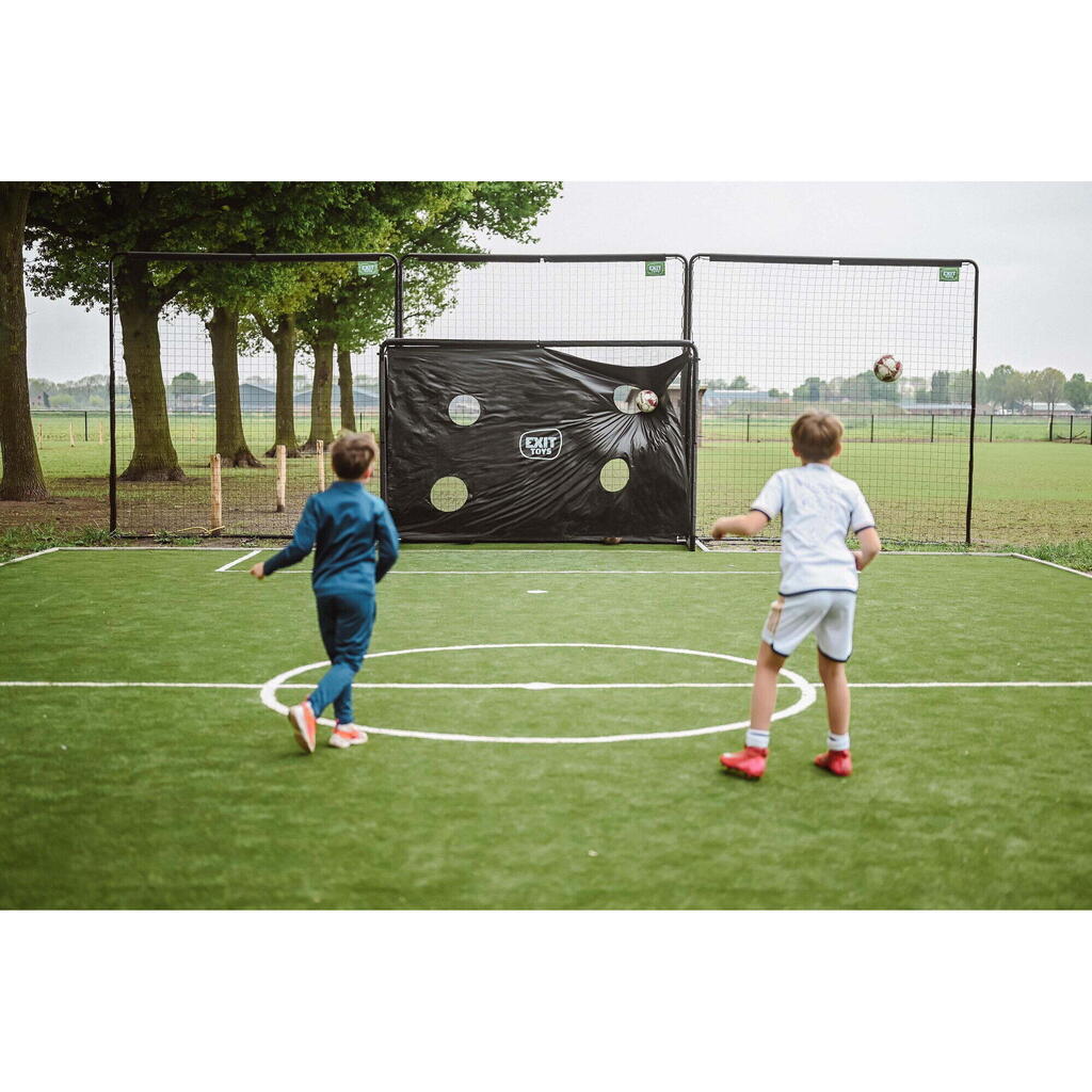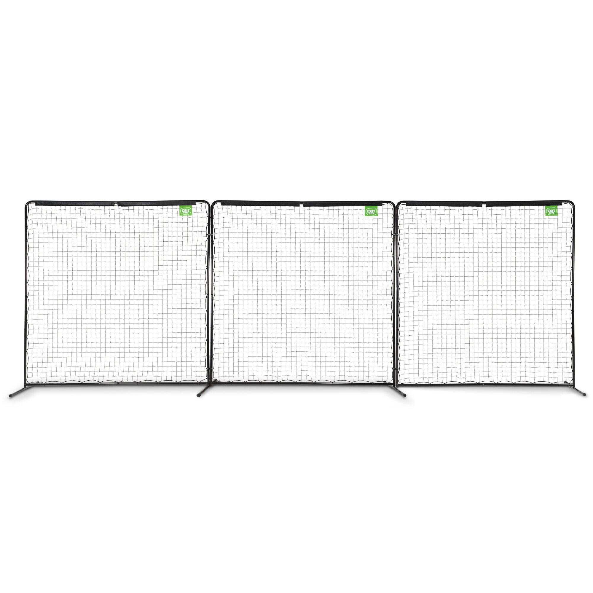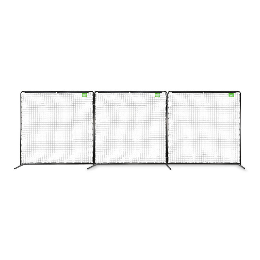 The EXIT Backstop sport net is the ideal ball catcher for the garden. The ball catcher consists of three black frames, each 10 x 10 ft, which can be attached to each other up to a height of 9 metres and width of 3 metres. The frame is galvanised and powder-coated for a long lifespan and a beautiful look. The horizontal legs, which are anchored using pegs and a ground anchor, ensure that the sport net stays in place even with the most powerfully kicked ball. The EXIT Backstop sport net fits into a small or a large garden, because the three frames can be set at various angles. Also on a sport field, this net will not be out of place.