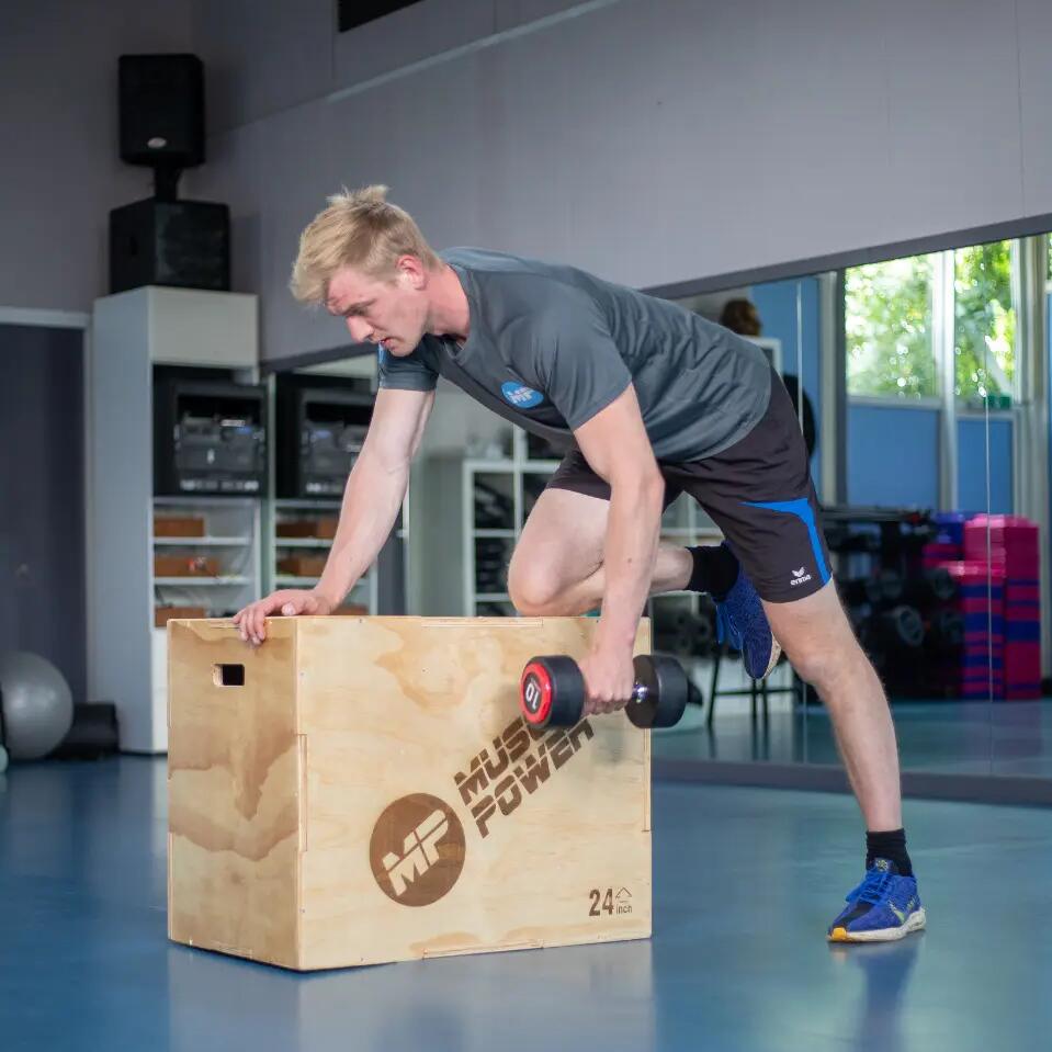 Train explosive power and improve your jumping ability with the tiltable Muscle Power Wooden Plyo Box in three heights.