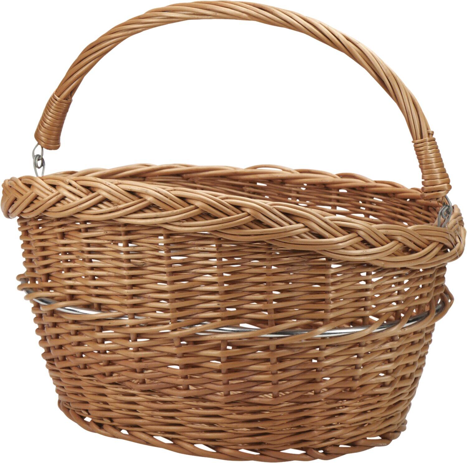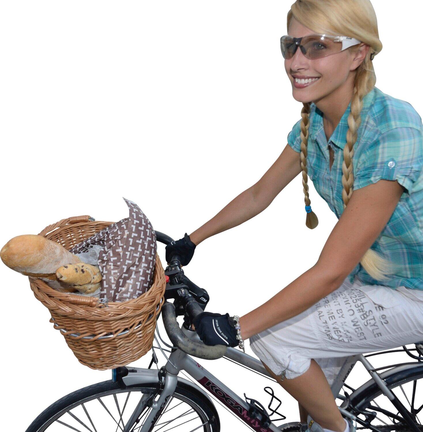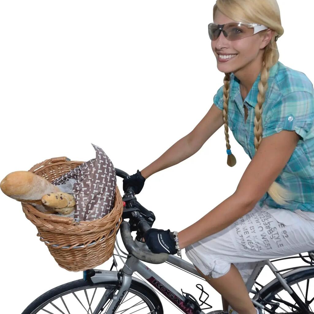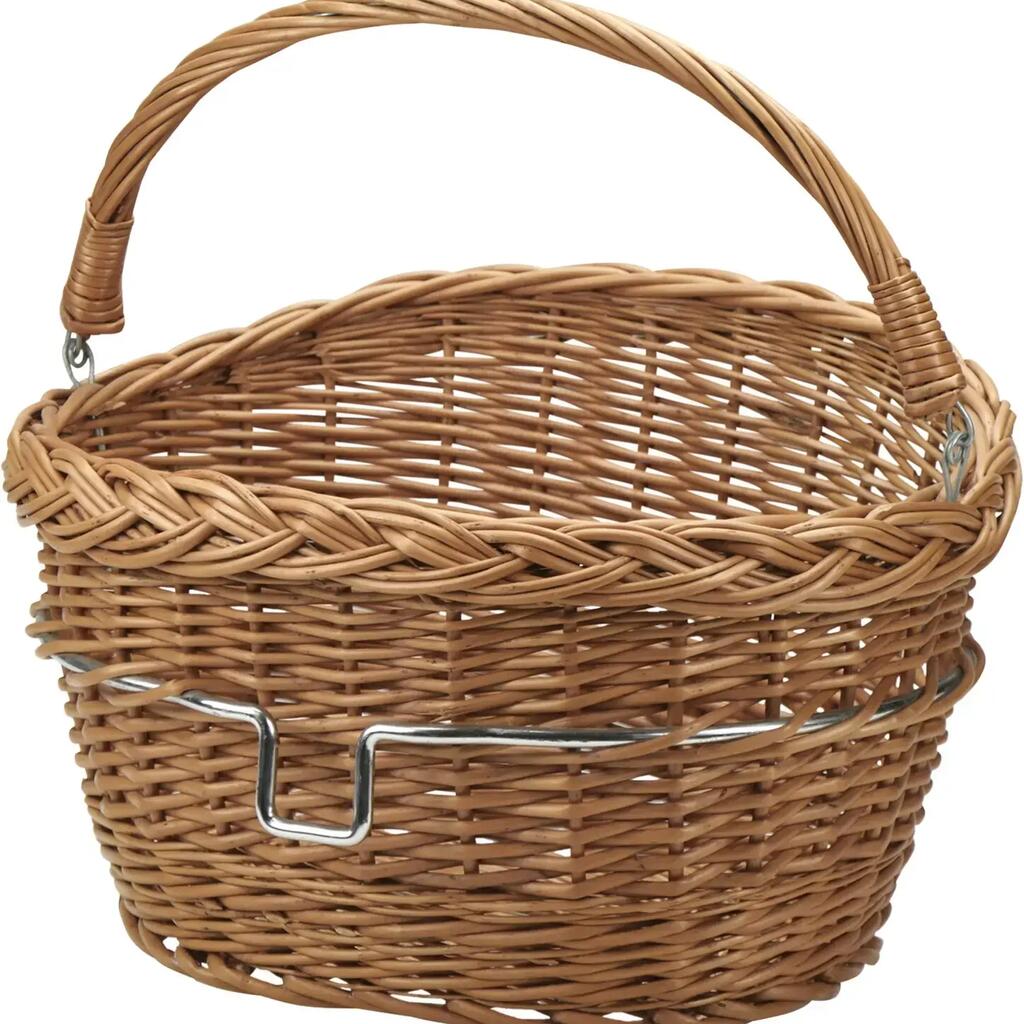 beige woven wicker basket 40×31×30 cm (18 L) with integrated chrome bar, KLICKfix-compatible, ideal for city bikes.