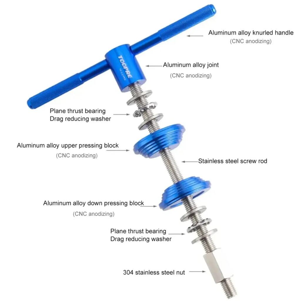 Made from high-strength aluminium alloy and stainless steel, this tool ensures smooth and controlled pressing without damaging bearings or components.