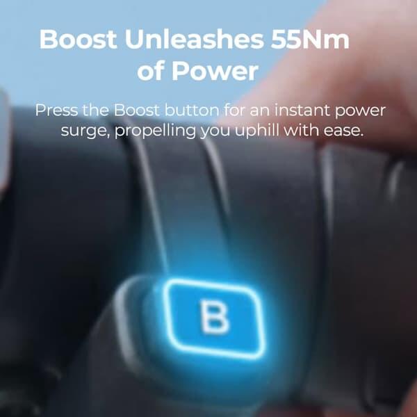 Experience the future of e-bike assistance with the EP-2 BOOST's advanced torque sensor system. Unlike basic cadence sensors that simply detect wheel rotation, the torque sensor measures exactly how much force you're applying to the pedals and delivers proportional power assistance in real-time. The result is an incredibly , intuitive riding experience—the harder you pedal, the more power you receive, with seamless transitions that make every ride feel effortless. Whether you're accelerating from a stop or maintaining speed on rolling terrain, the Boost button adds an extra 55Nm of torque on demand, giving you instant power exactly when you need it.
