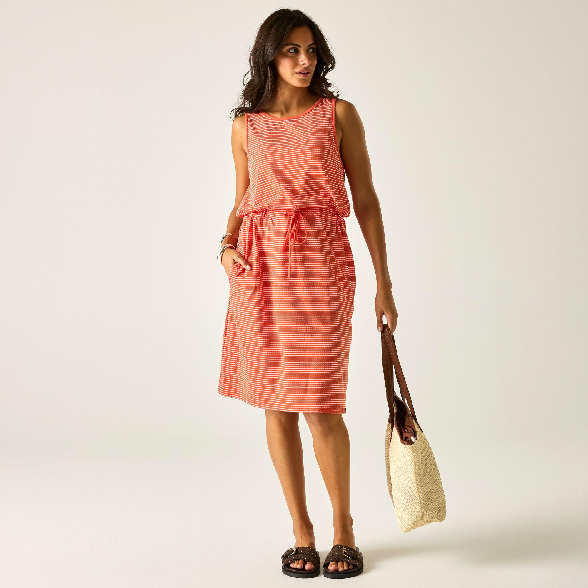 Stay comfortable in the Amorie summer dress from Regatta. Soft cotton-blend jersey delivers a relaxed fit, while the adjustable drawcord waist adds shape. An effortless style for beach walks, holidays