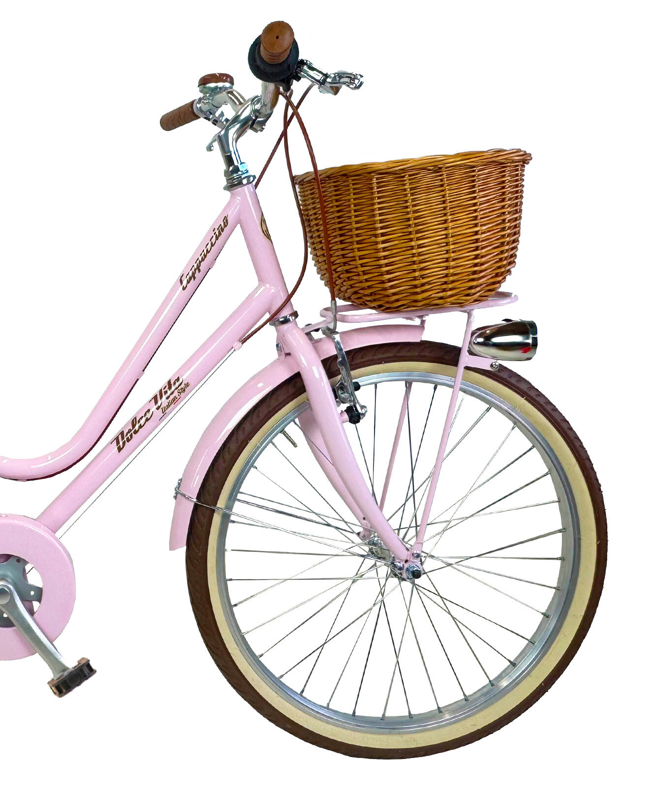 Vintage girls' bike: safe, stable, and durable, with V-Brake, wicker basket, and elegant design. Unique and unmistakable style for every adventure.