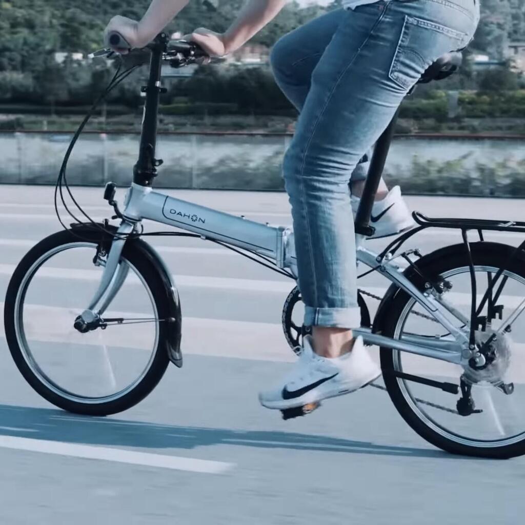 Dahon Mariner D8 Quick Silver folding bike with 20" wheels and aluminium frame.