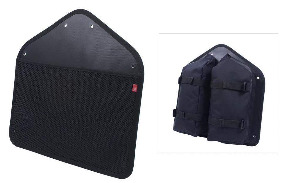Fahrer Panel Bags for Bullitt: two Cordura accessory pockets, front mesh pocket and mounting kit included.