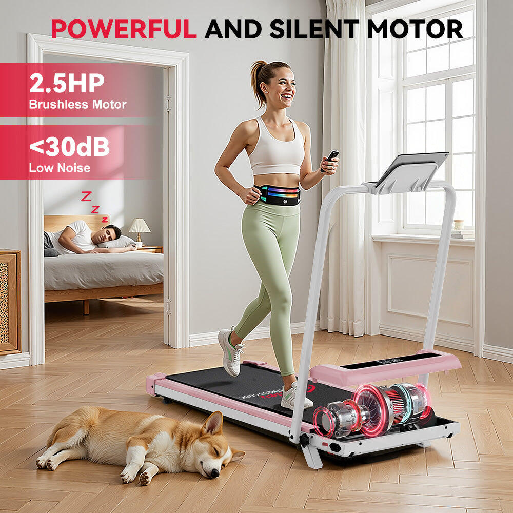 Quiet 2.5HP brushless motor, 1-6km/h speed range and 5% incline for effective low-impact workouts, all in a slim space-saving design.