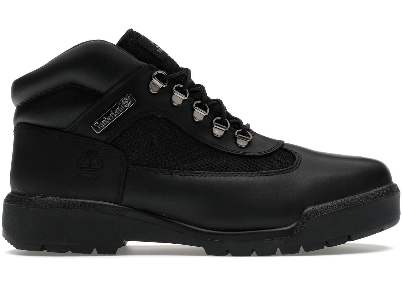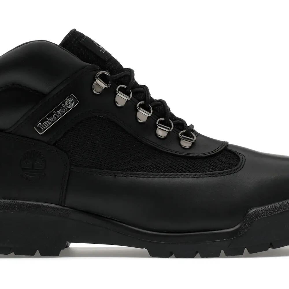 Timberland Field Boot Mid waterproof, mid-cut, all-black for rugged outdoor performance and urban style.