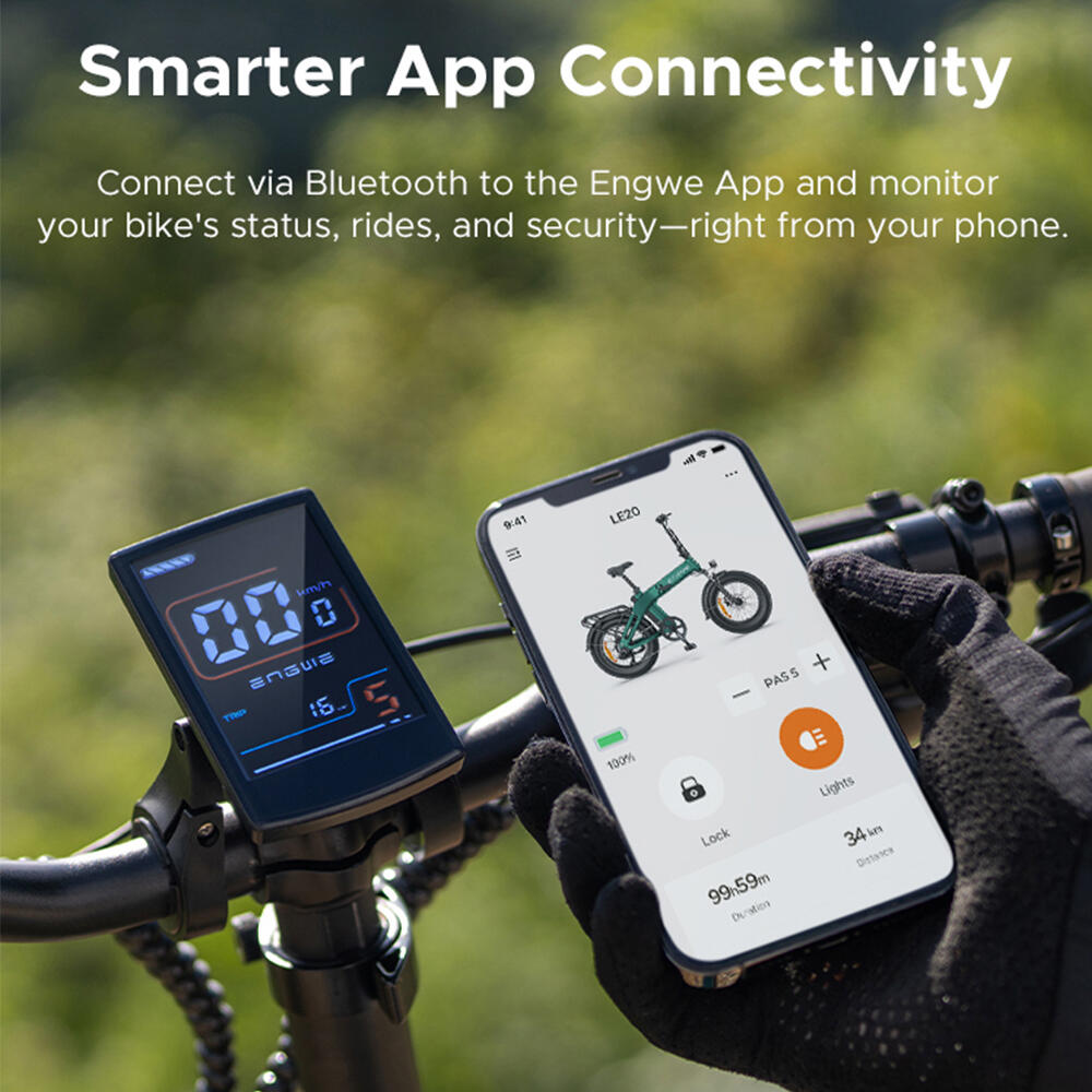 Connect to the Engwe app via Bluetooth and monitor the status, rides and security of your bicycle – directly from your smartphone.