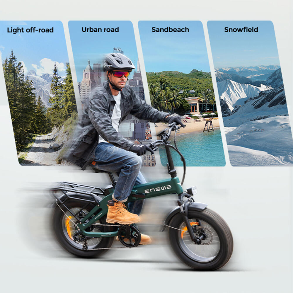 The all-terrain wide tires offer excellent grip and shock absorption – from city streets to sandy beaches and snowy paths.