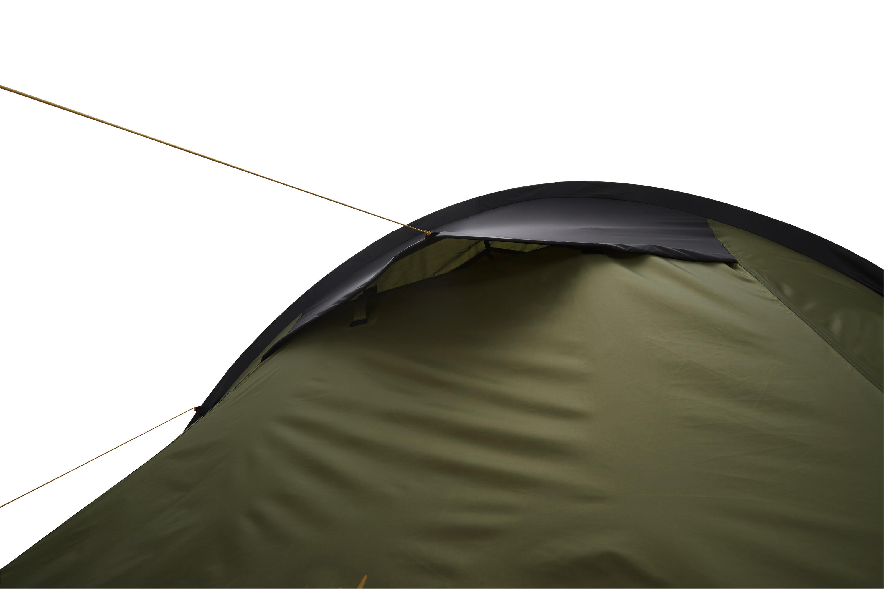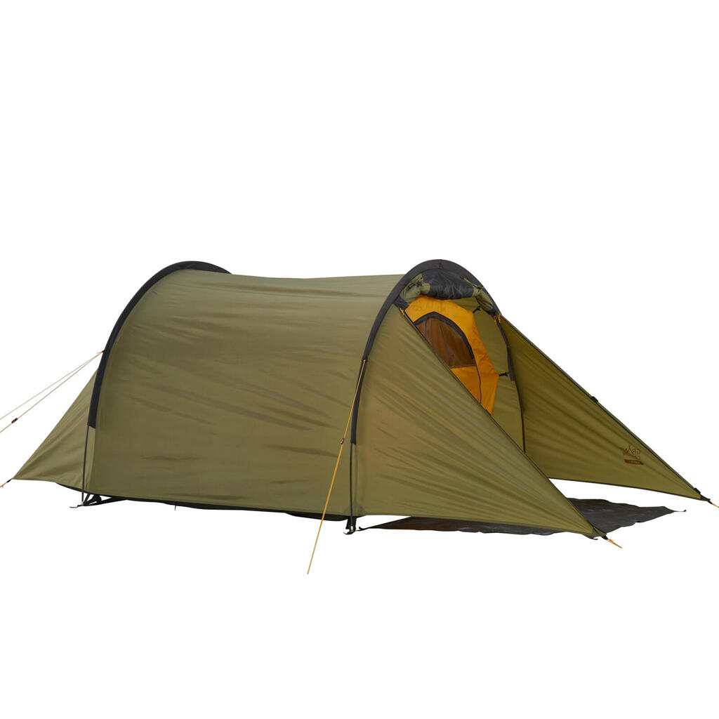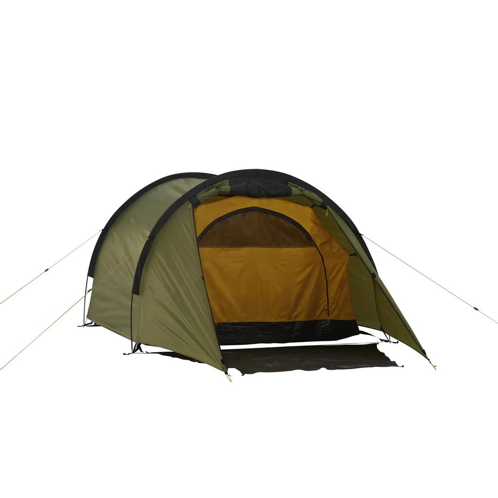 2-person tent with excellent ventilation and a porch for storage. Wind resistance, mosquito nets, and great airflow for comfort.