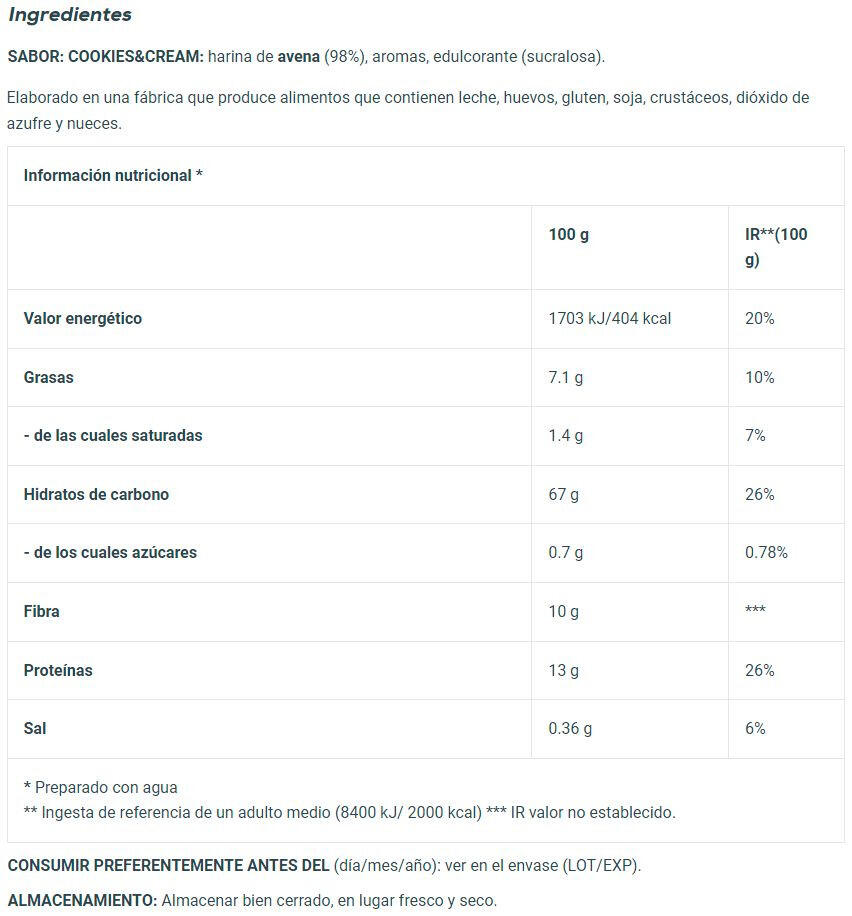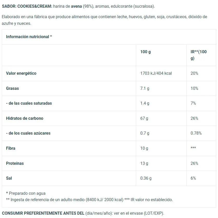 Instant Oatmeal - 1000g Cookies and Cream Biotech USA