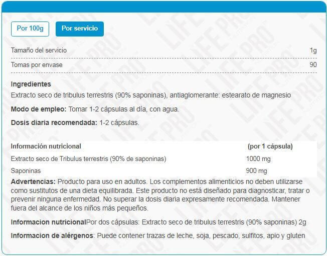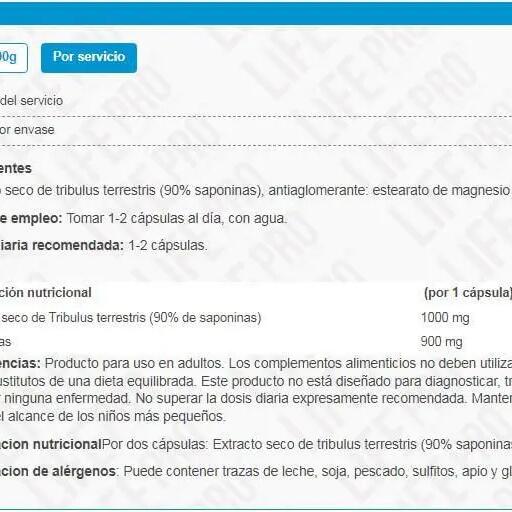 Tribulus Pro 90 from Life Pro Nutrition is a food supplement made with a composition based on tribulus terrestris, ideal for raising testosterone levels and promoting growth.