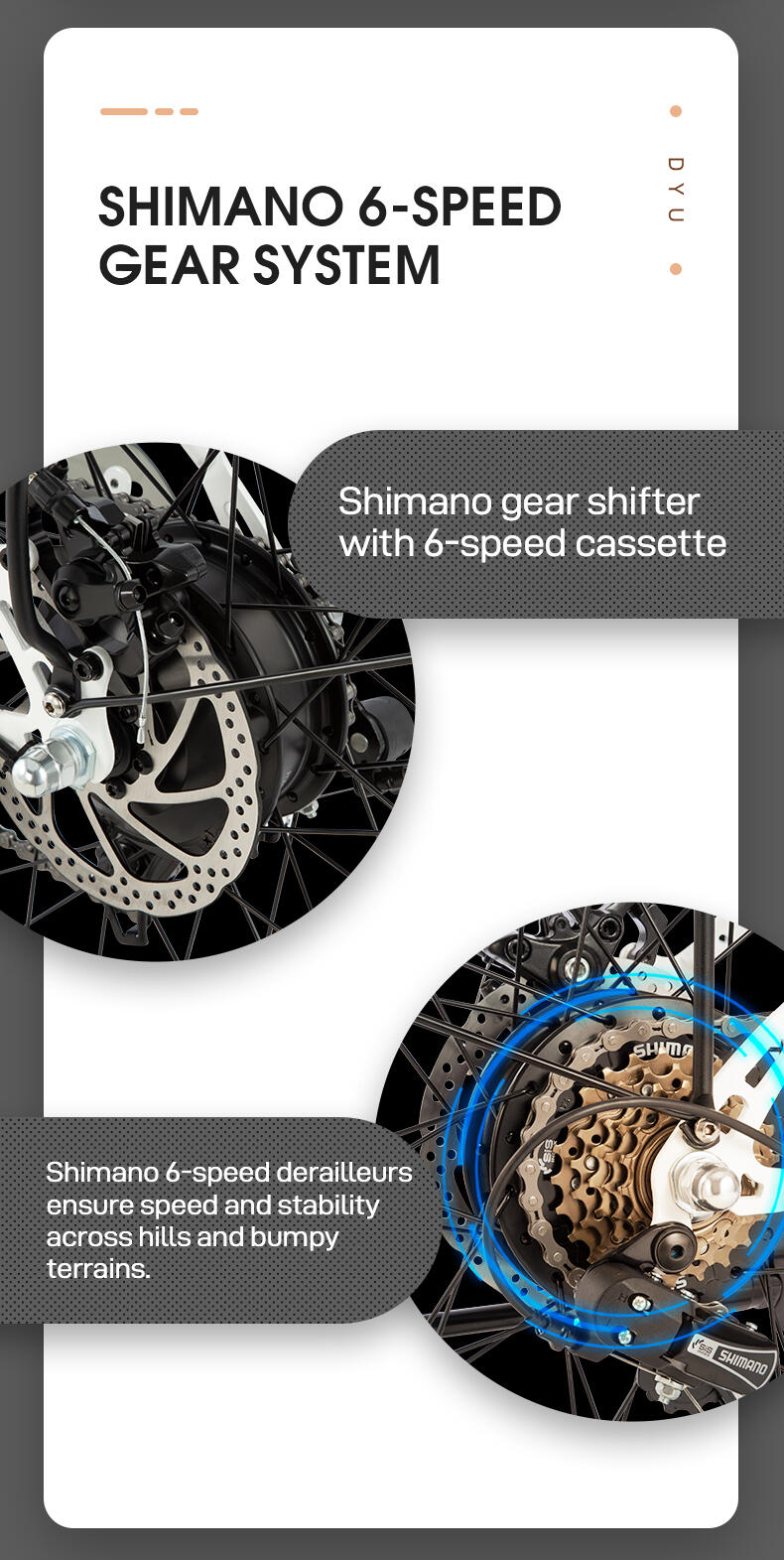 Safety is deeply integrated into the DYU C6. It is equipped with front and rear mechanical disc brakes that provide reliable stopping power even in wet or rainy conditions. To ensure maximum visibility, the bike features high-intensity front and rear lights. Every detail, from the responsive braking to the vibration-dampening 26x1.95-inch tires, is designed to keep you secure. The package also includes a comprehensive multi-language manual for hassle-free operation.