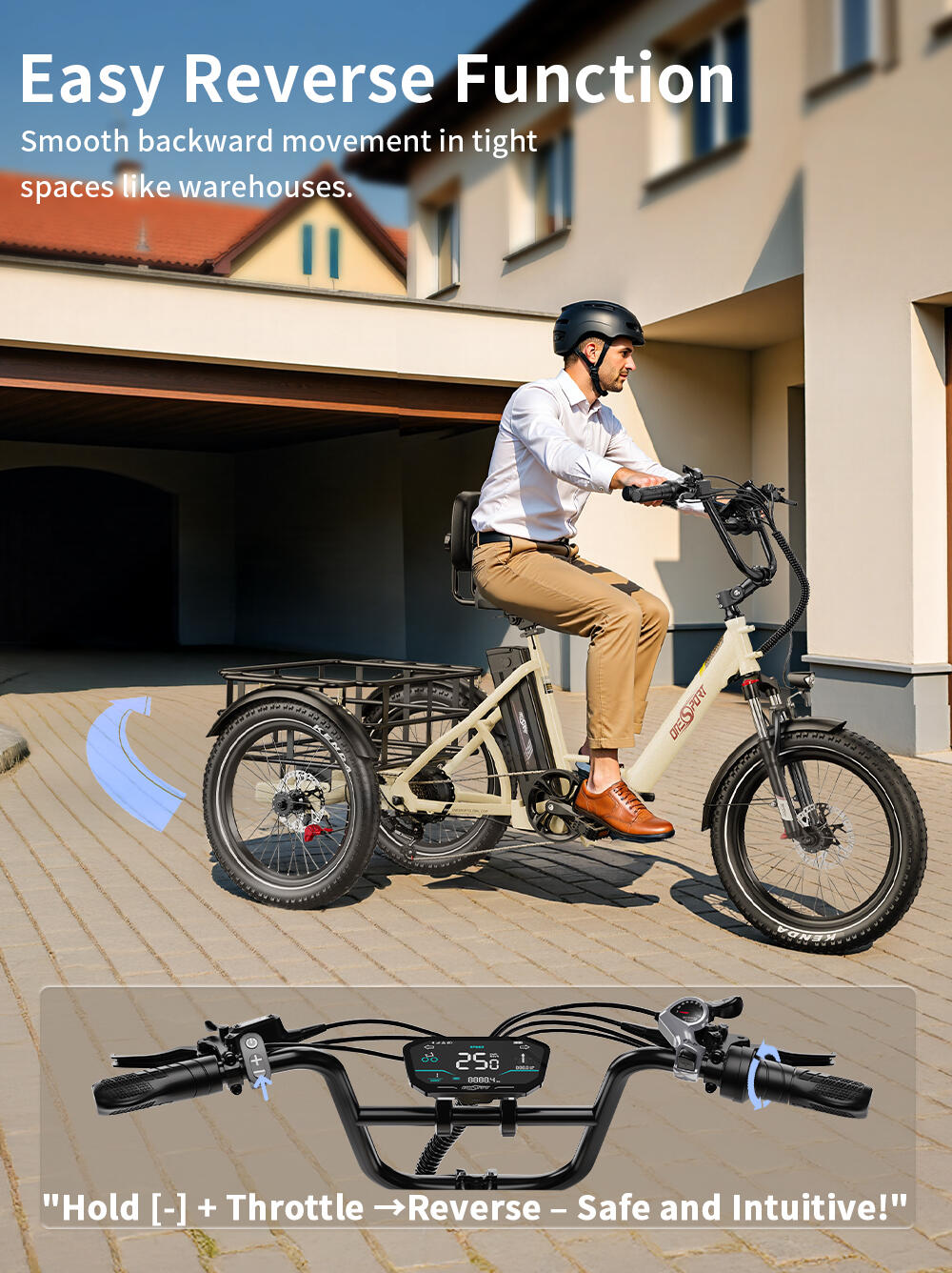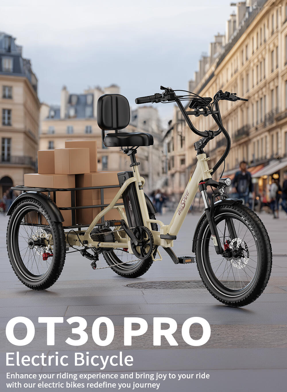 Master every load with the OT30 PRO. A heavy-duty cargo tricycle featuring a high-precision torque sensor, massive payload, and smart reverse mode.