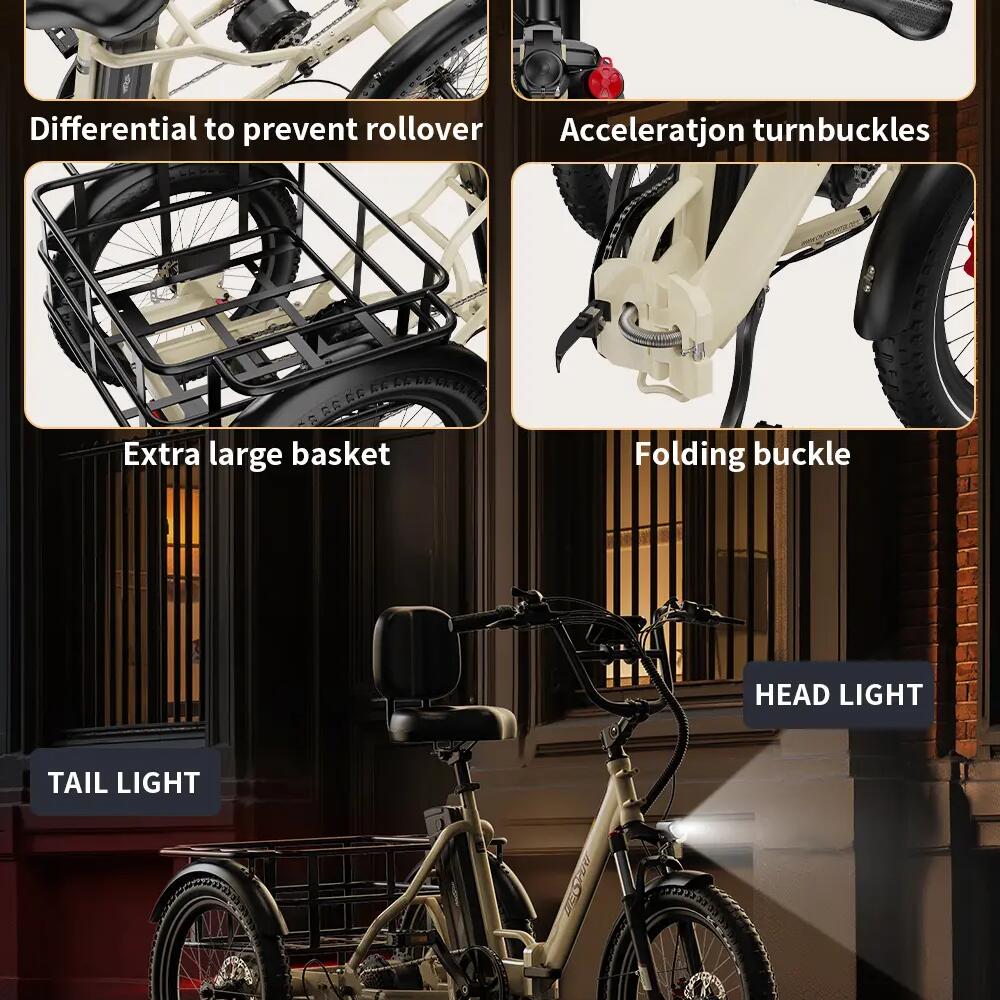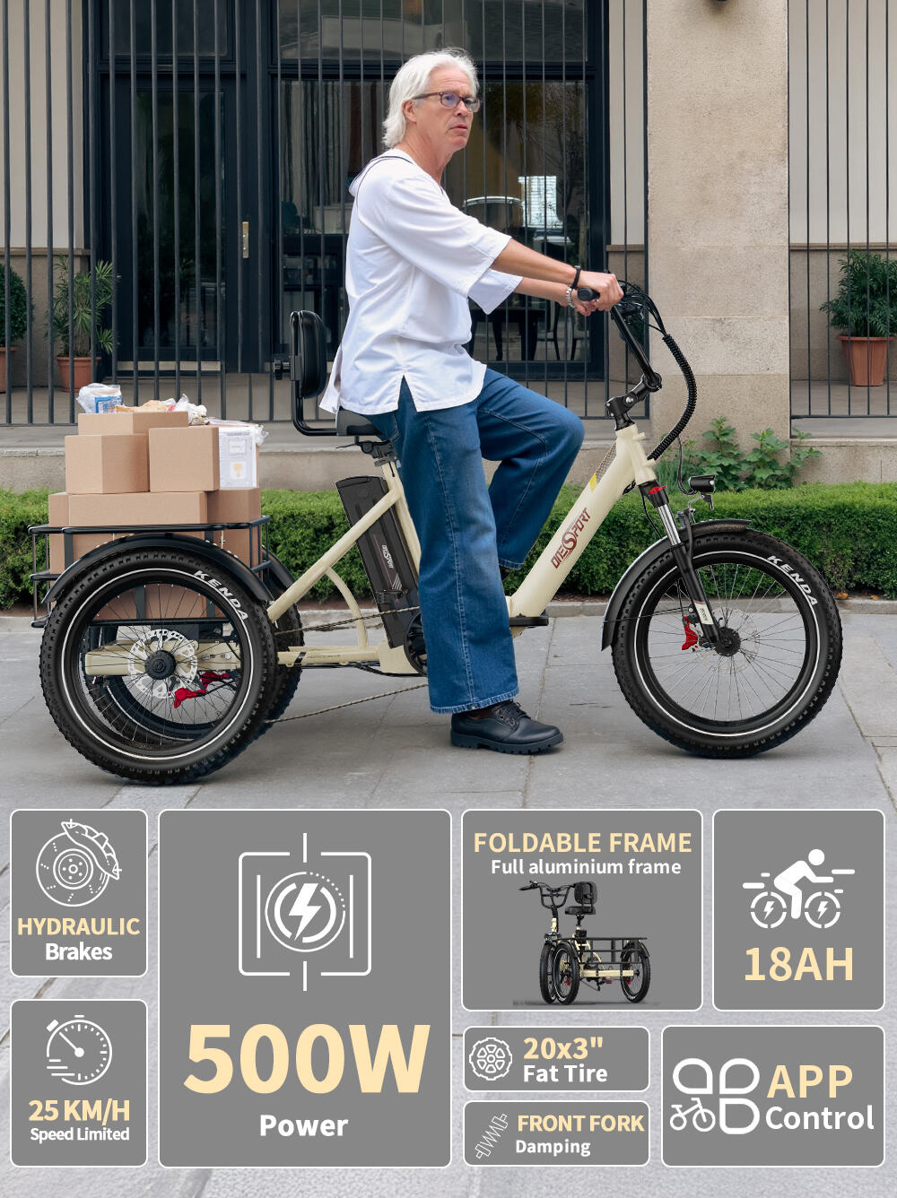 ONESPORT OT30 PRO Electric Cargo Trike 20 Inch Fat Tire