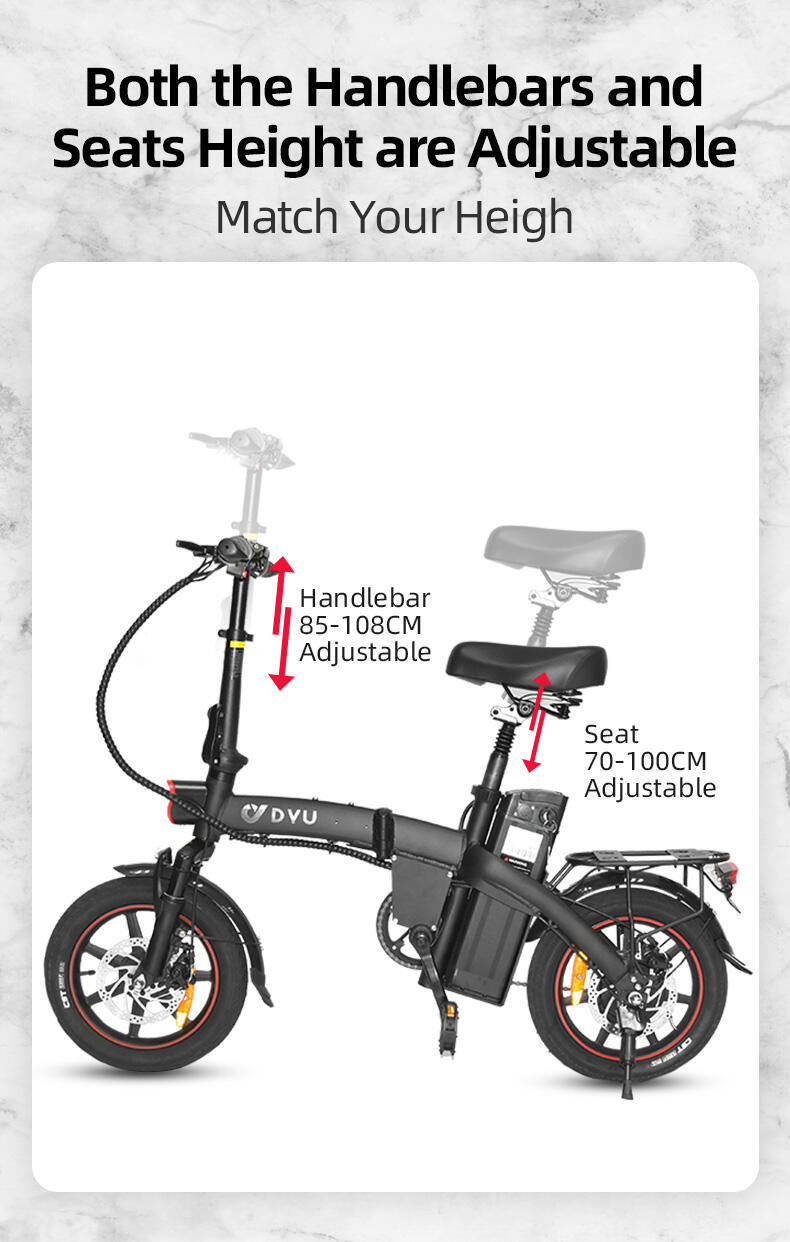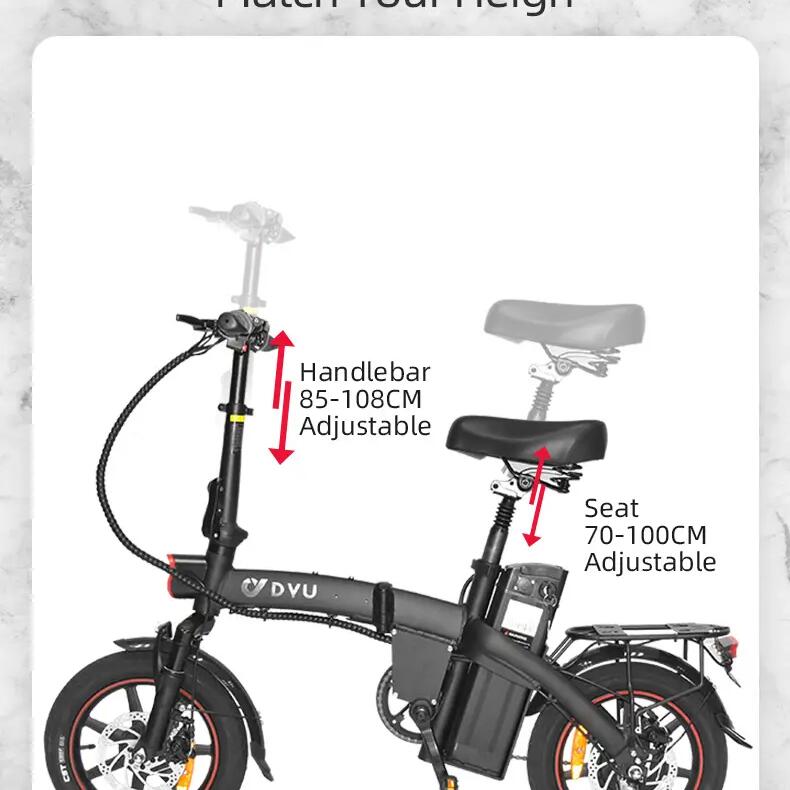 Safety is the core of the DYU A5 design. It is equipped with front and rear mechanical disc brakes that provide reliable, high-precision stopping power in both wet and dry conditions. For enhanced safety during low-light commutes, the bike features an integrated bright LED headlight and a clear signal system. Every component, from the stable 14x2.125-inch tires to the responsive controls, is engineered to keep you secure on every road surface.