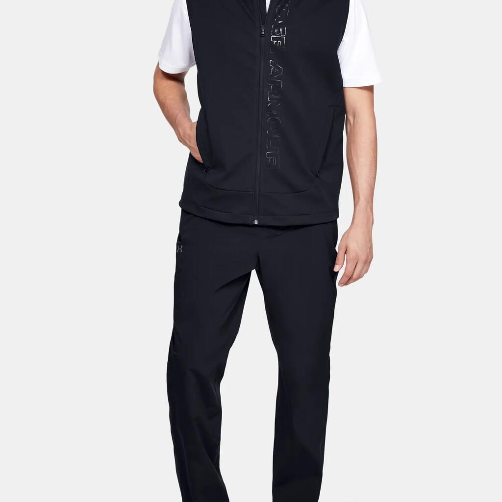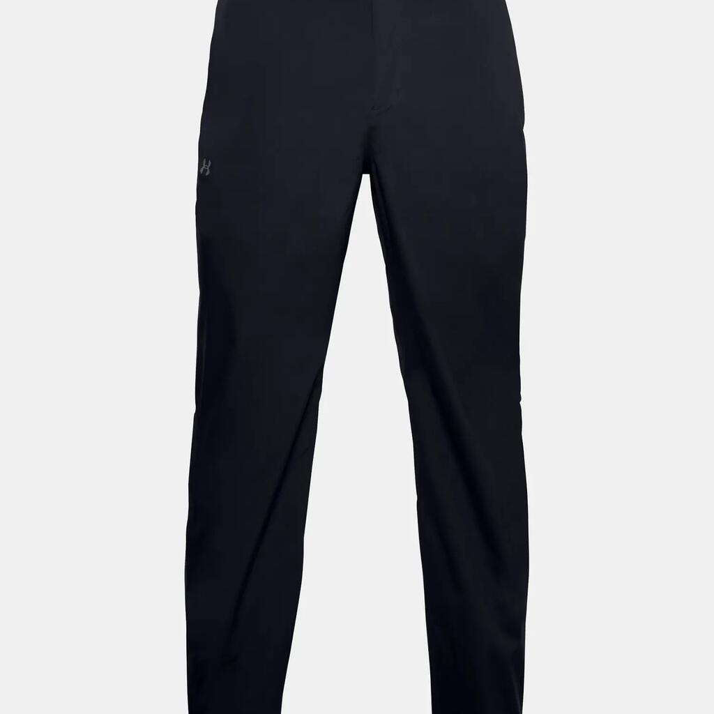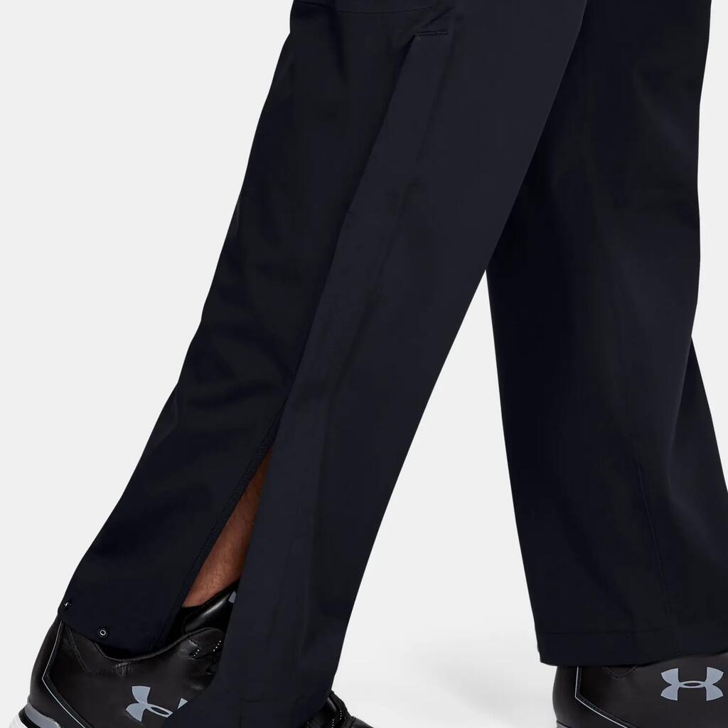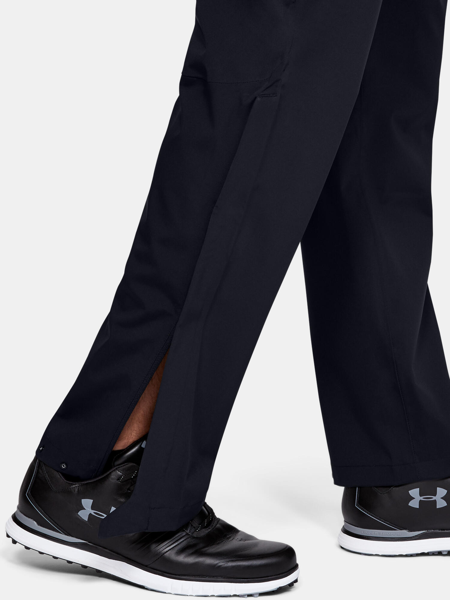 Water-repellent golf pants with fleece lining for warmth, adjustable waist for a customized fit.